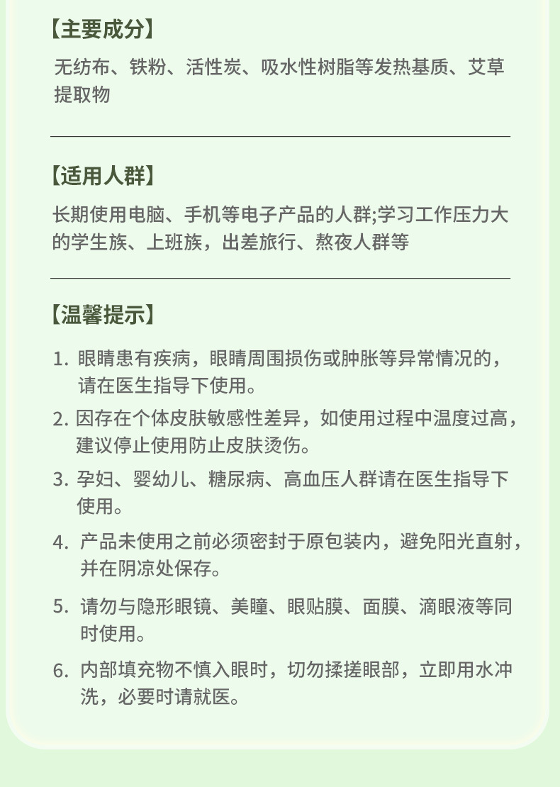 「草本热敷!独立包装」米卡博艾草蒸汽眼罩 居家日用热敷自发加热贴遮光睡眠护眼罩