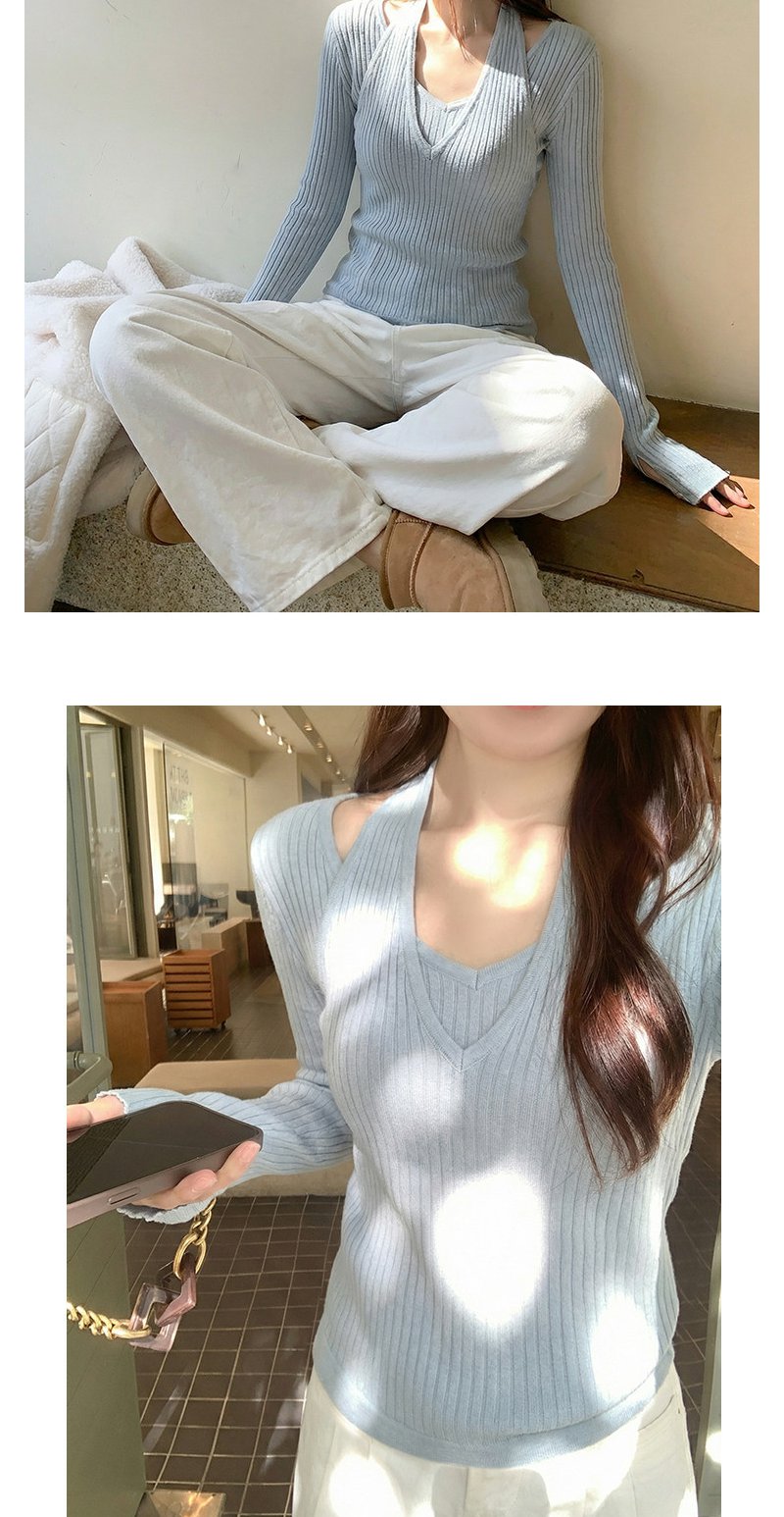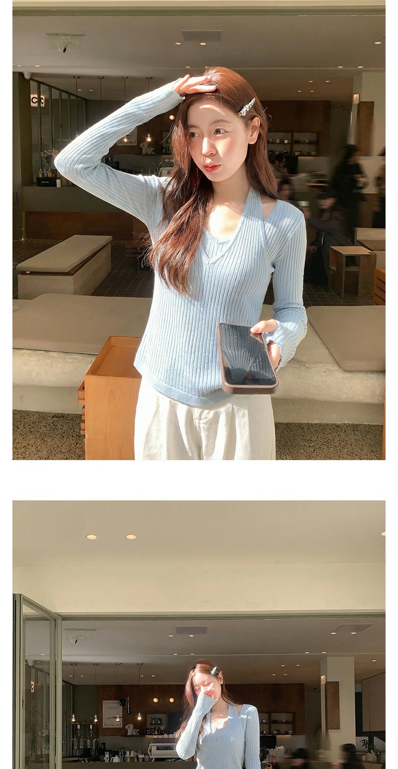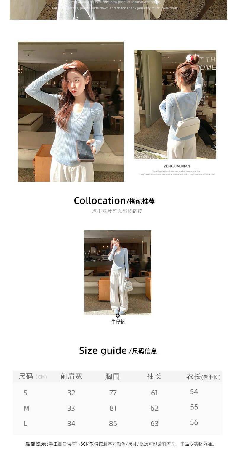 <曾小咸推荐>3.24现货秒杀 !微信超特价!韩系挂脖假两件v领针织衫 日常169.99 立减90 秒杀79.99!!