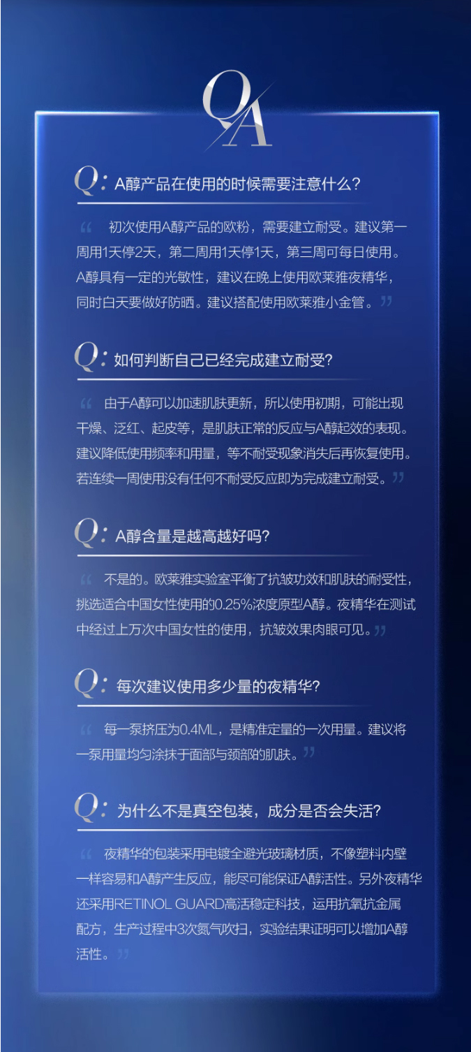 【商品名称】欧莱雅夜精华A醇精华液15ML