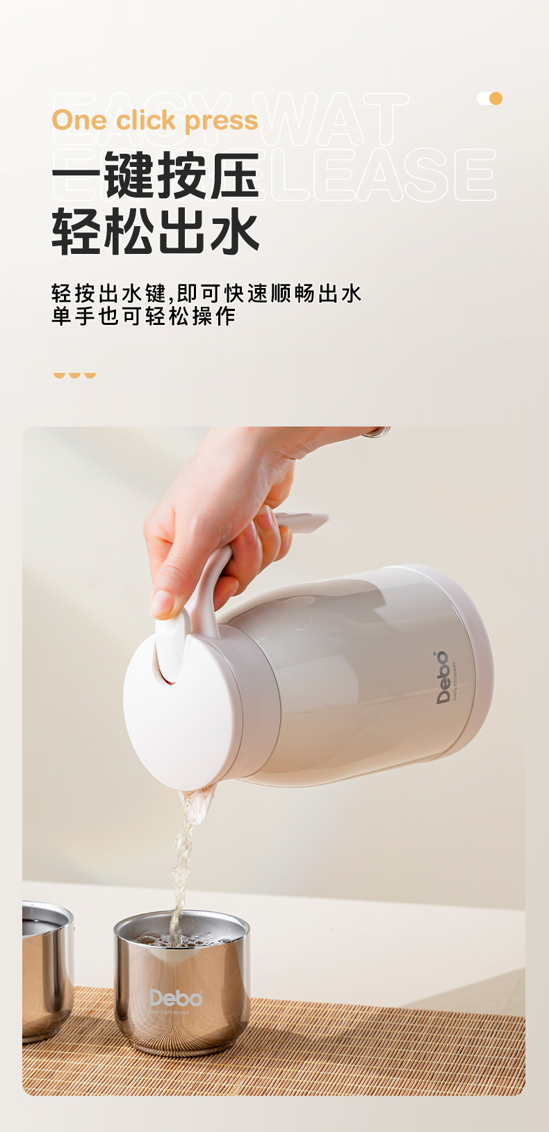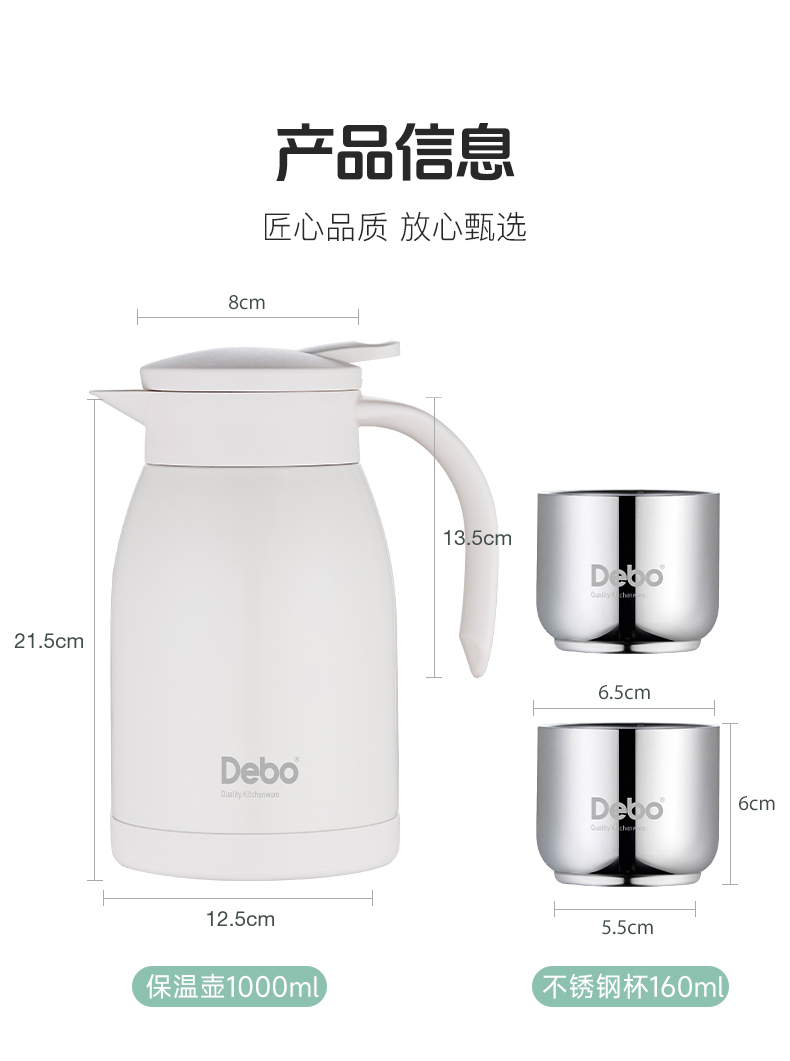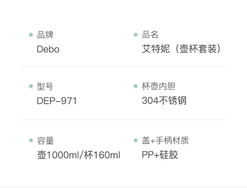 Debo德铂-艾特妮套装1壶2杯1000+160ml 大容量移动小水库 润养一整天