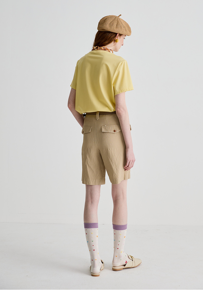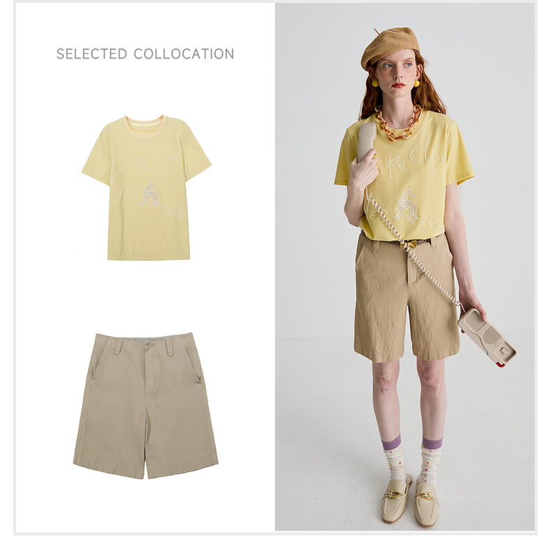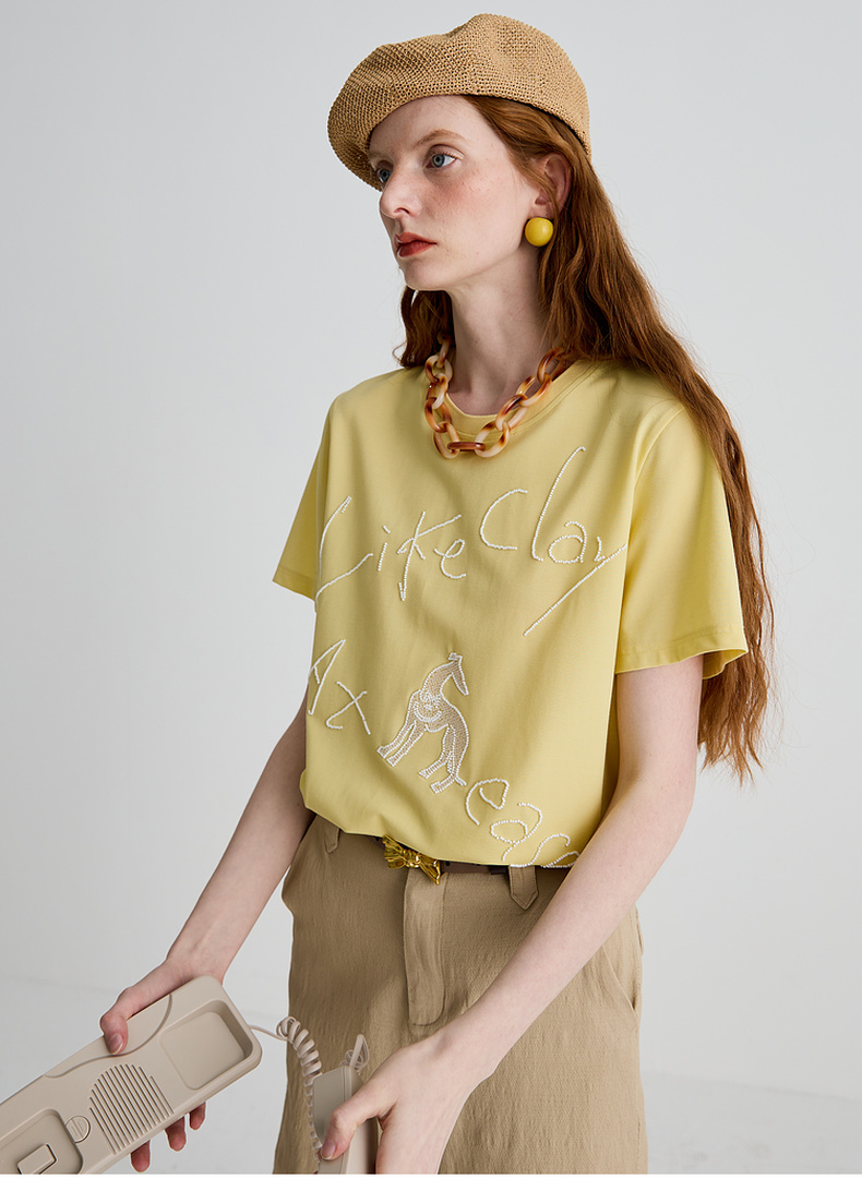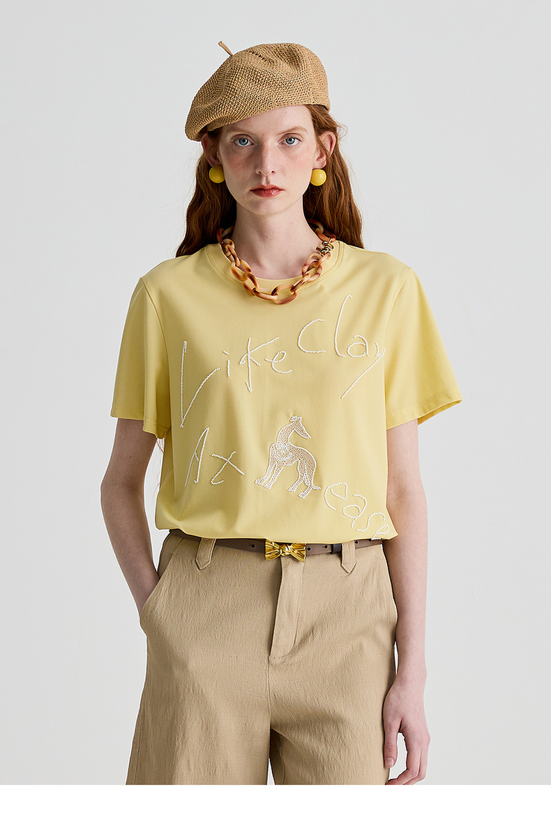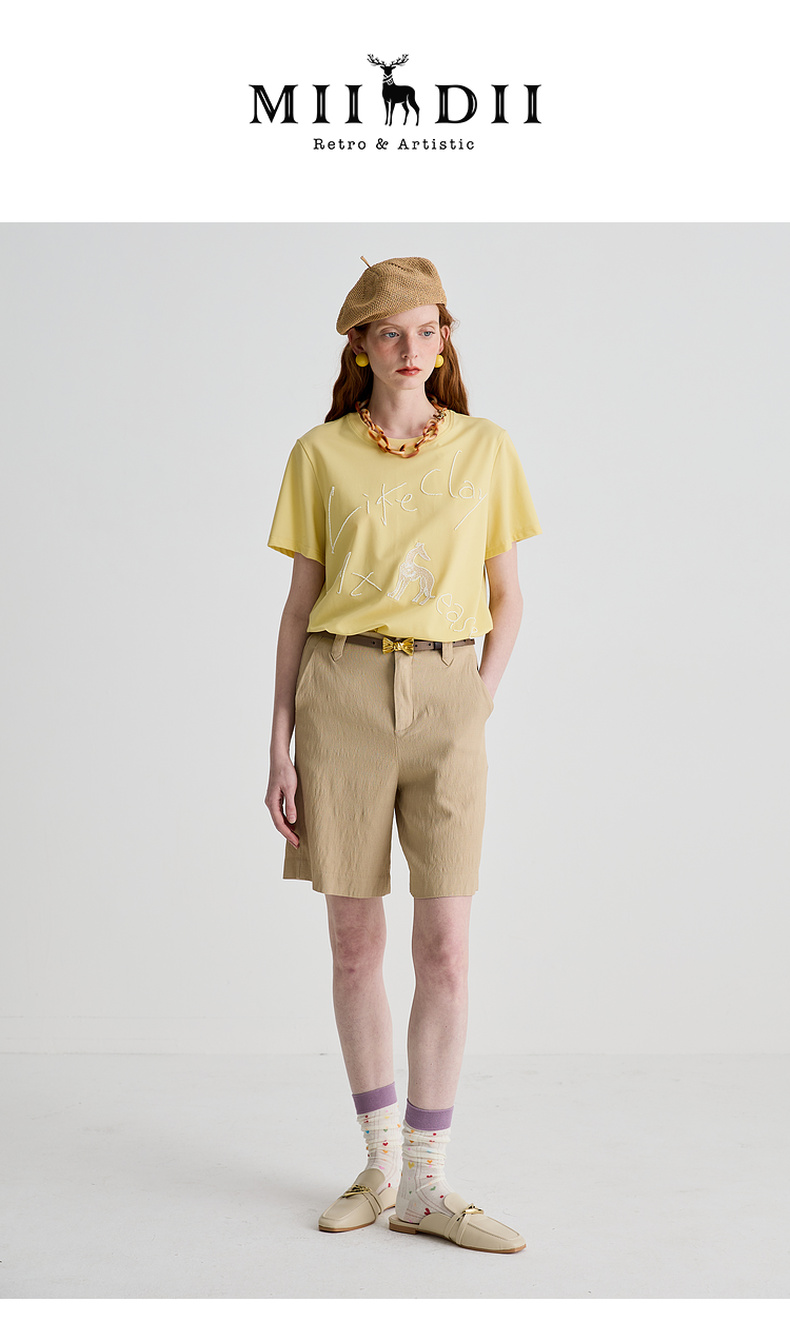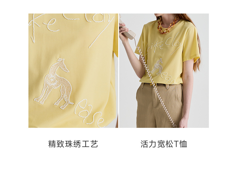 谜底T恤短袖女2025夏季新品休闲日常柠檬黄宽松H型上衣252MT0615