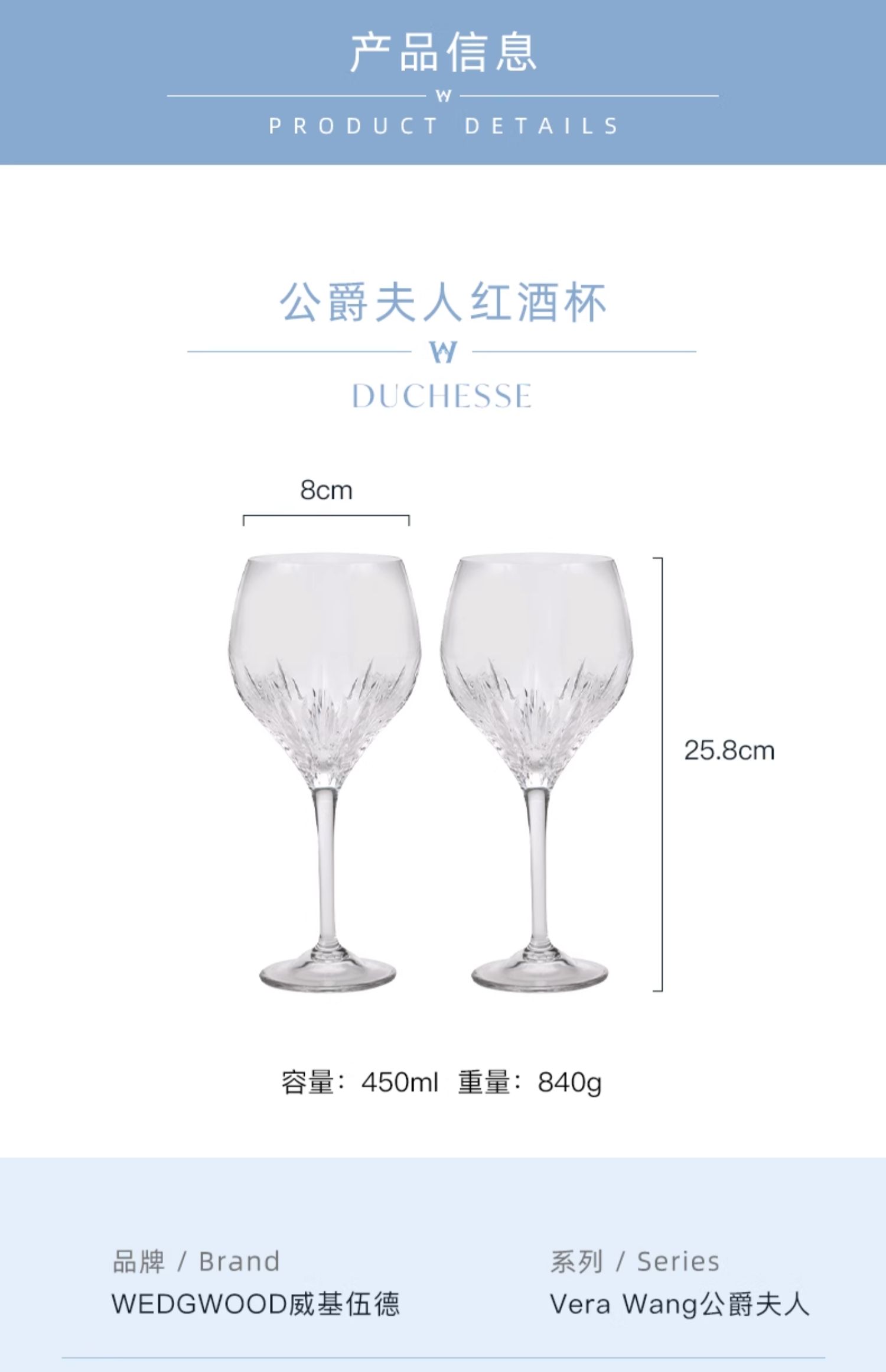 WEDGWOOD王薇薇VeraWang公爵夫人水晶葡萄红酒杯送礼