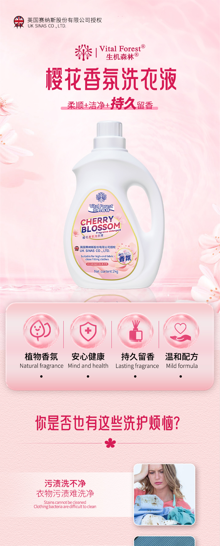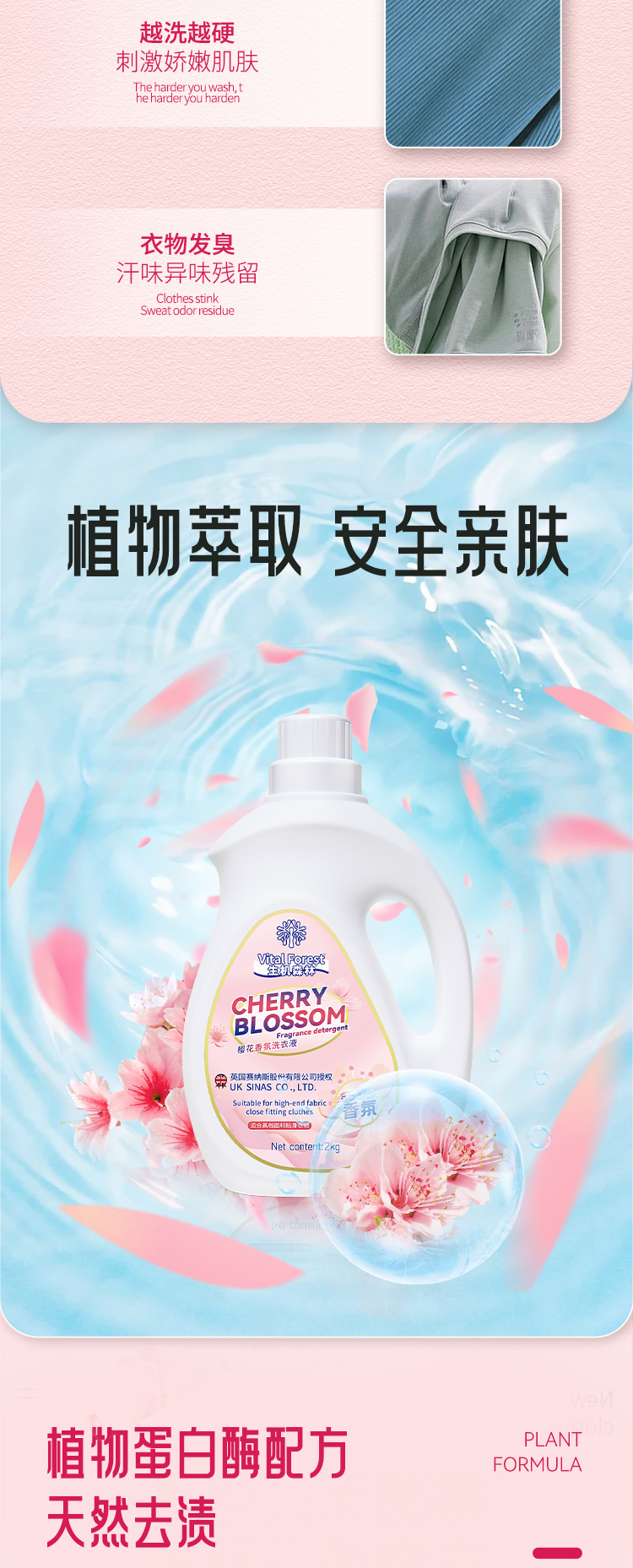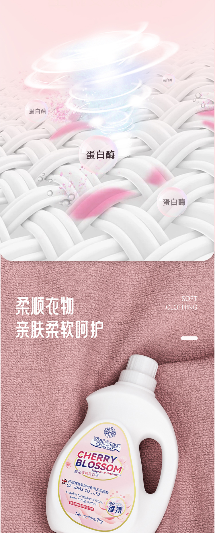 生机森林樱花香氛洗衣液2kg粉标桶装*2桶+500g袋装*1袋/2kg粉标桶装*6桶+500g袋装*3袋 深层洁净 持久留香