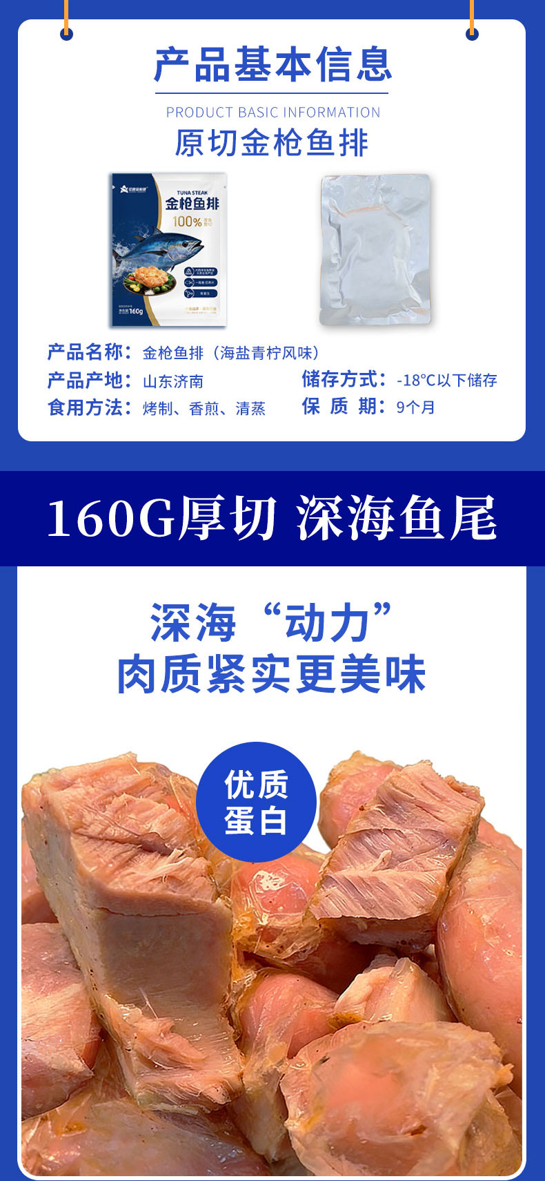 【顺丰冷链】中鲁金枪鱼金枪鱼排无抗野捕厚切背肉海鲜健身轻食冷冻鱼片海盐青柠风味160g(袋装)