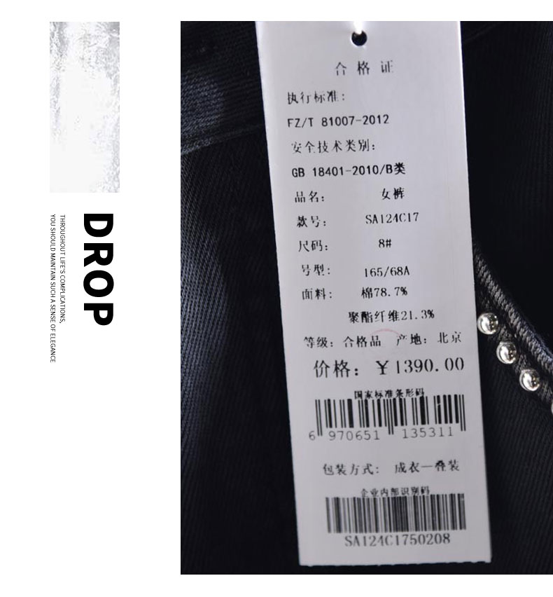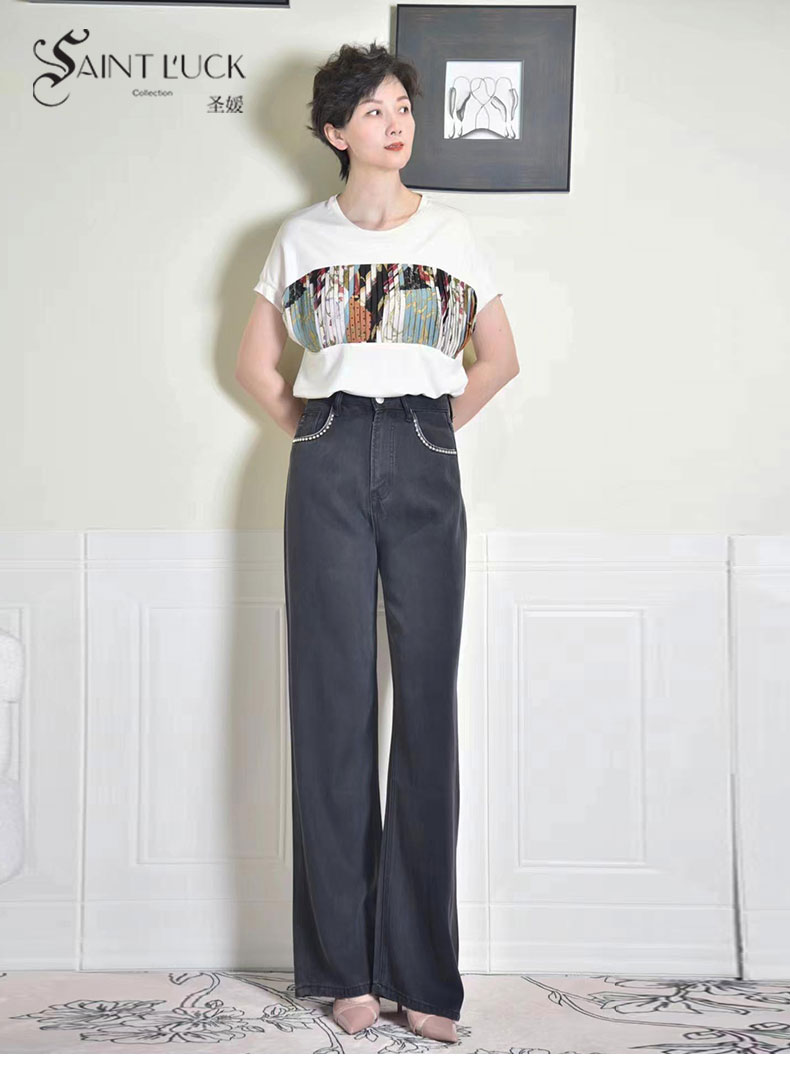 SAINT L’UCK/圣媛女装时尚直筒牛仔裤SA124C17
