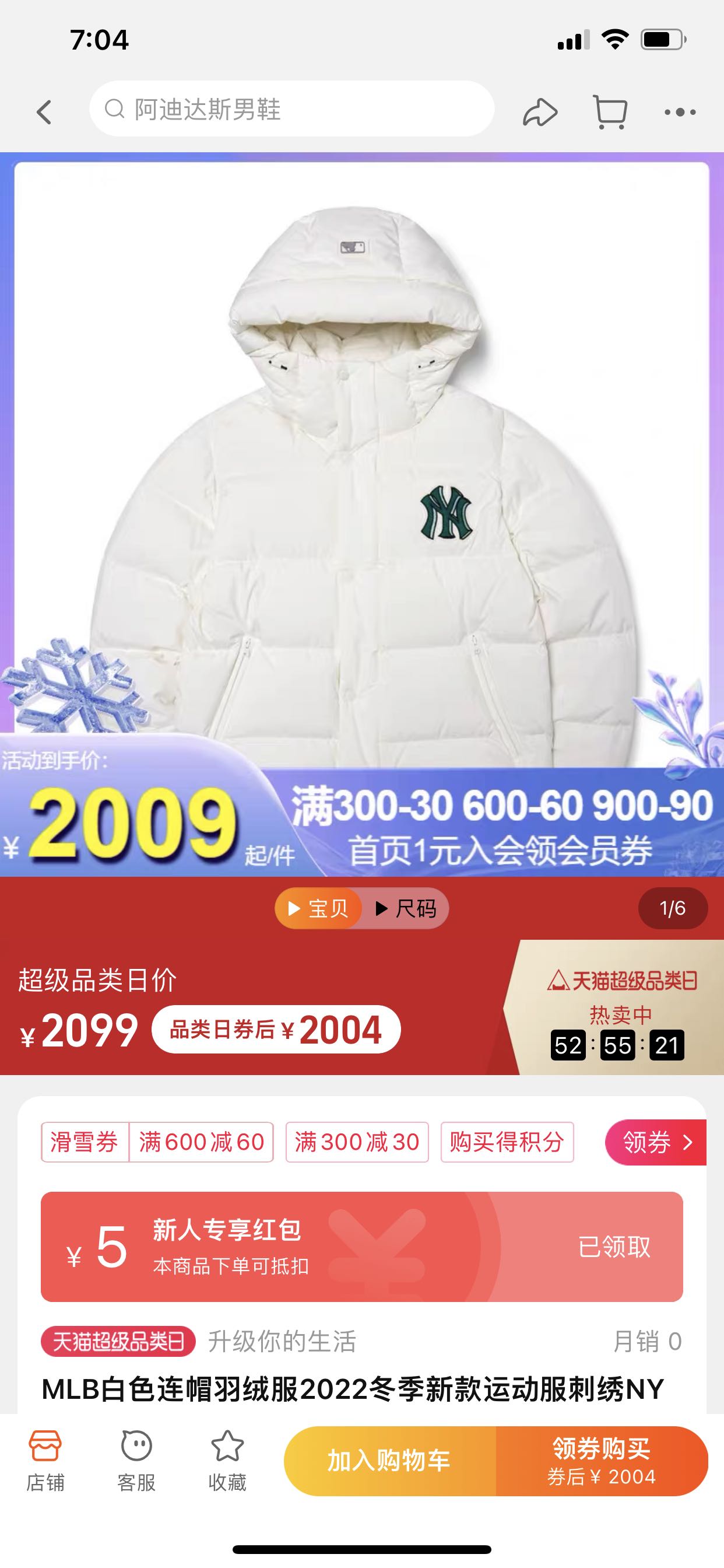 【品名】MLB 22秋冬新款男女NY刺绣印花休闲保暖连帽羽绒服
