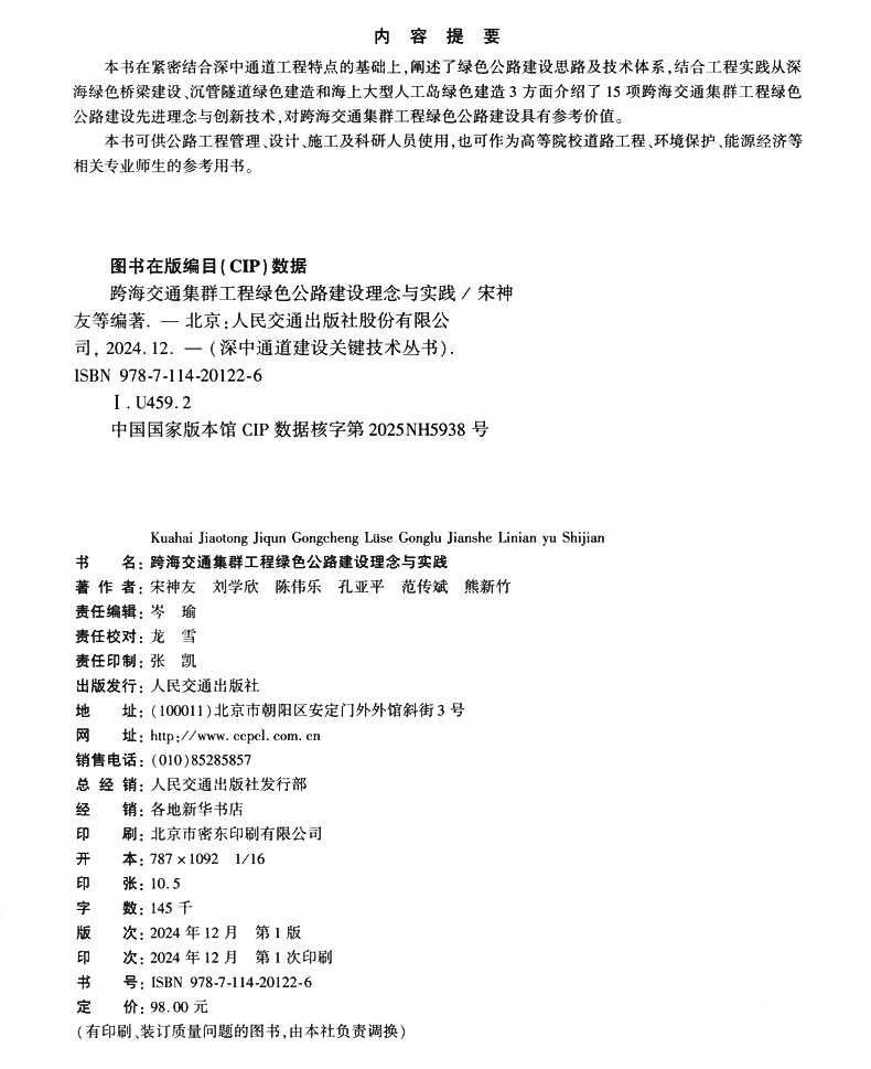 书名:跨海交通集群工程绿色公路建设理念与实践