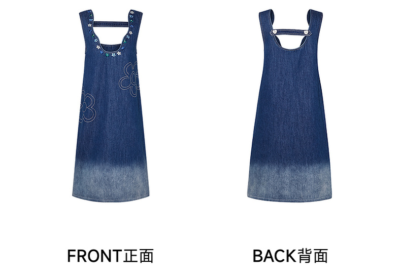 两三事一人相伴 春夏新款时尚单边背带裙系扣高腰牛仔半身裙S23CKB050