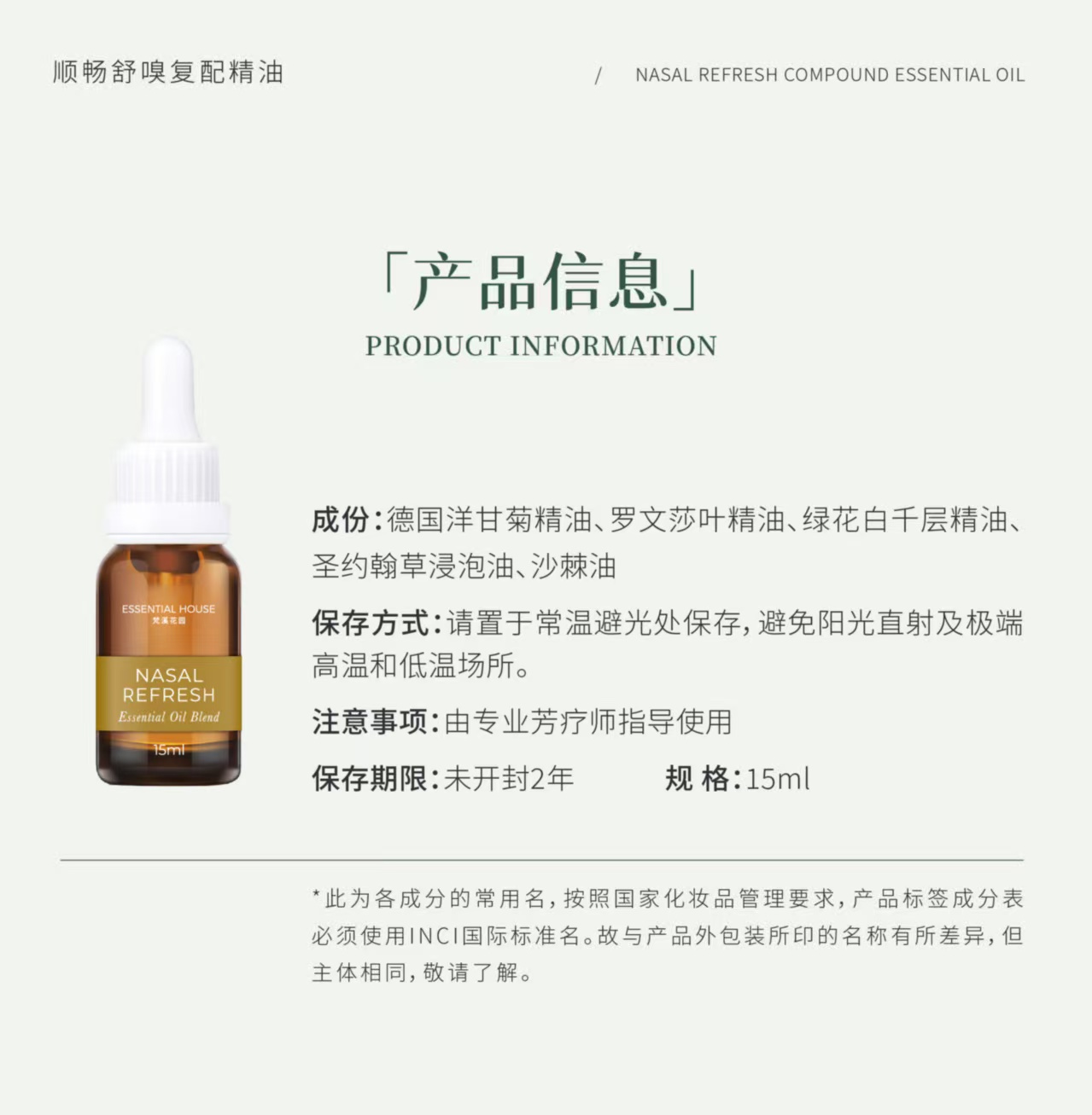 【自然呼吸 轻松舒畅 鼻炎旧星】顺畅舒嗅精油 15ml 梵溪花园