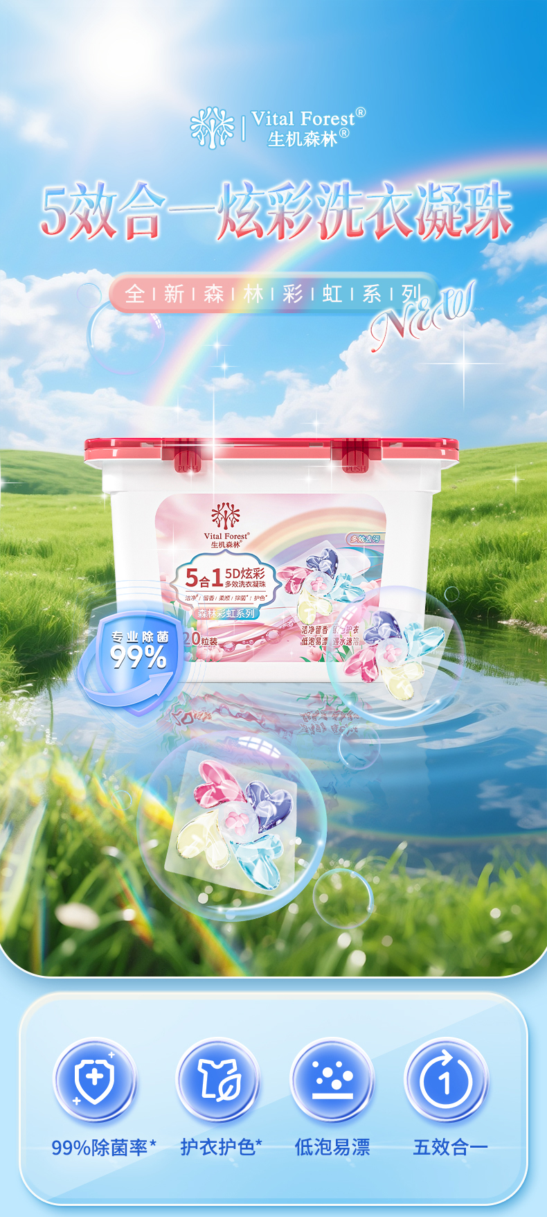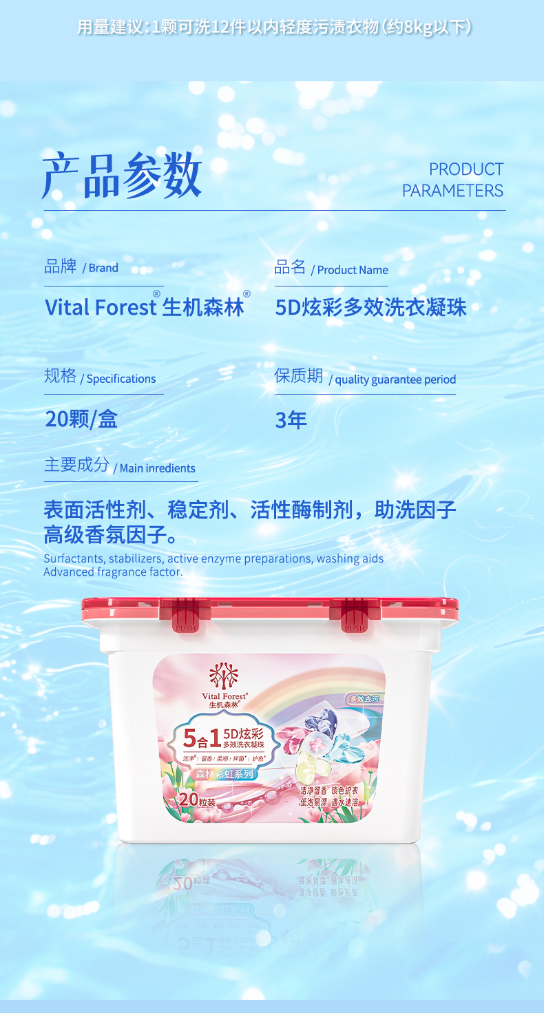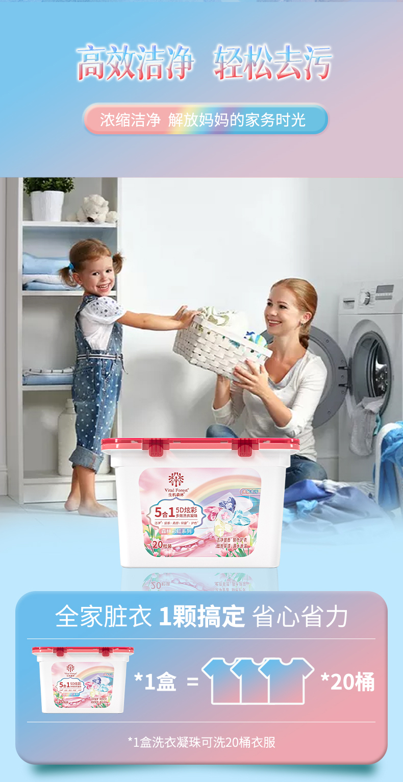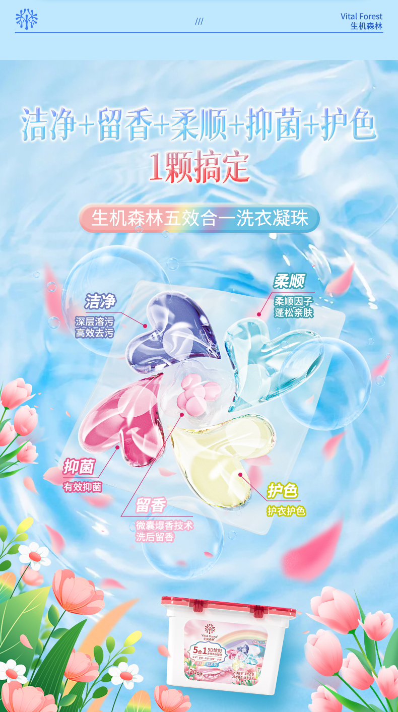 生机森林五效合一多功能洗衣凝珠洁净+留香+柔顺+抑菌+护色(到手2盒+1袋 50粒)