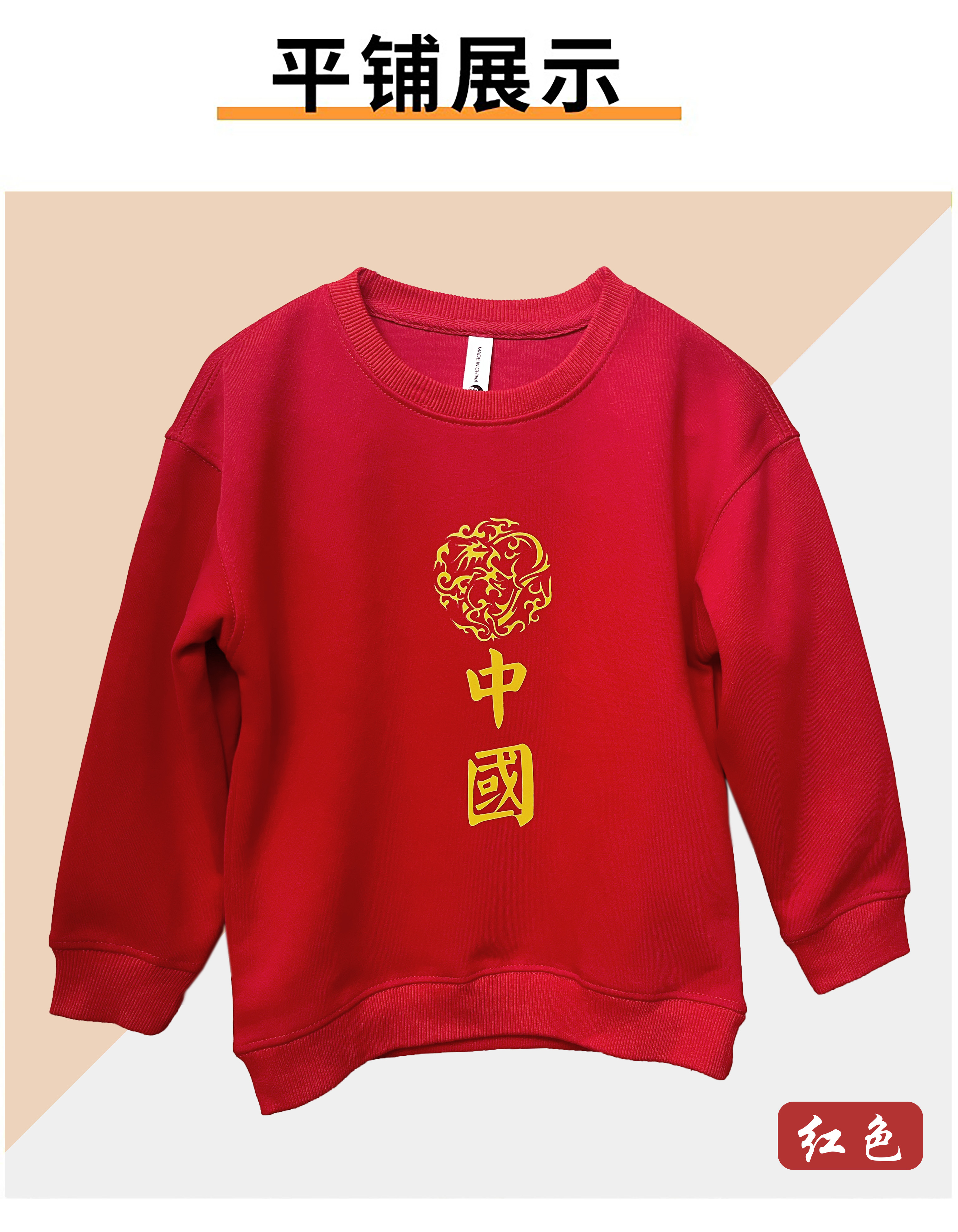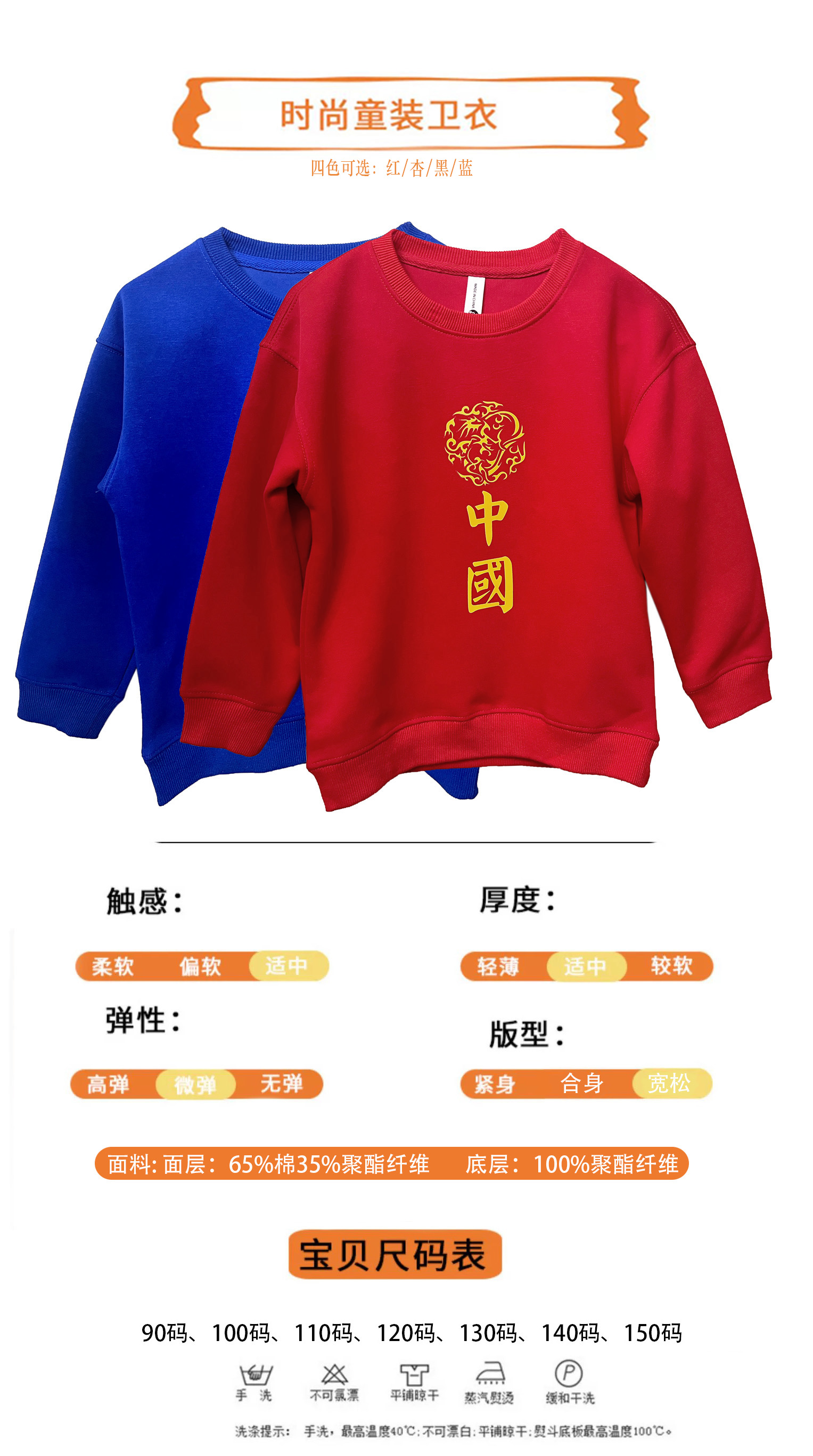 中国风棉质儿童卫衣 男女同款 四个颜色 适合早春、秋天和冬季内搭
