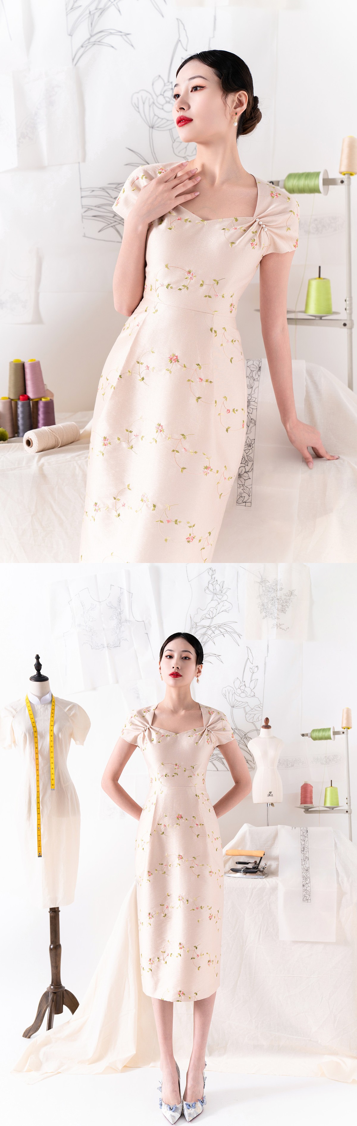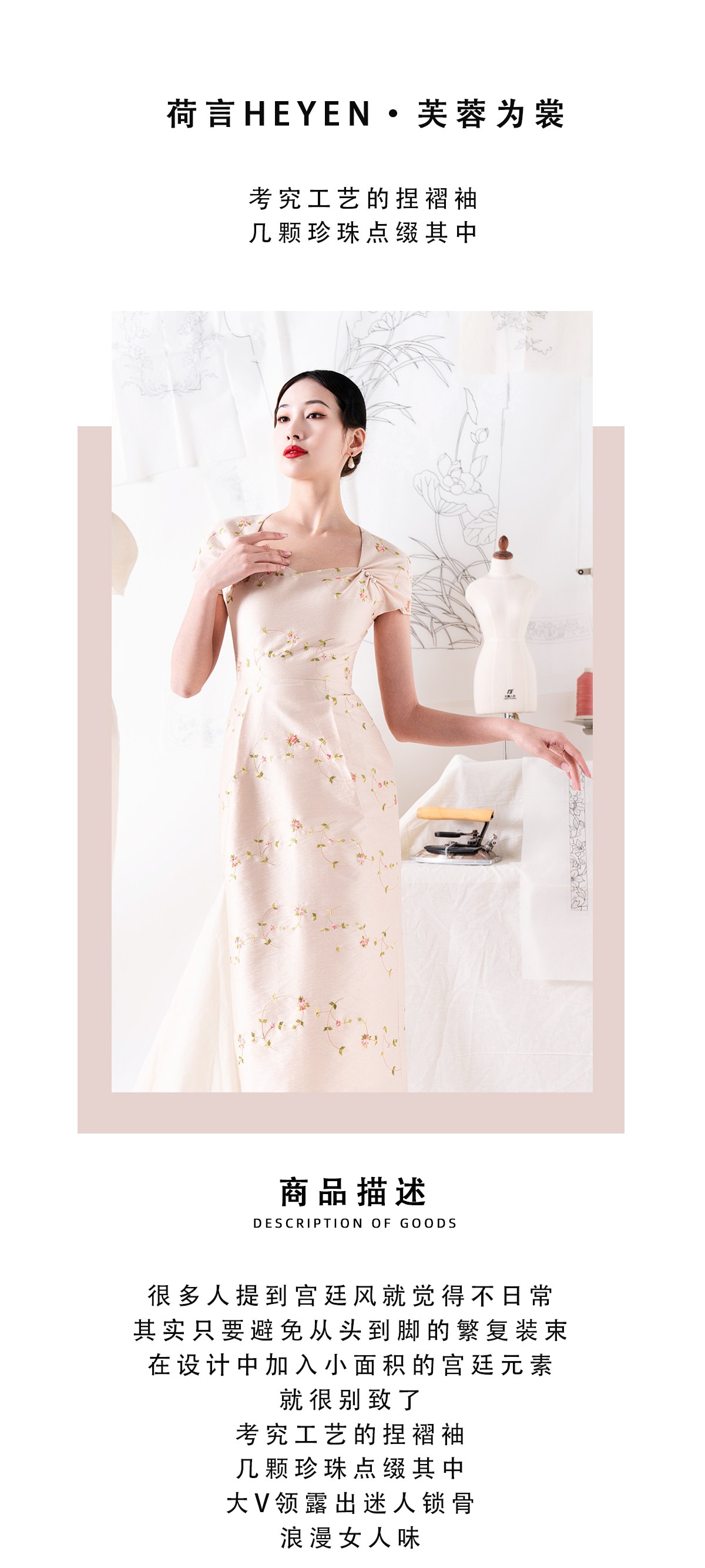 荷言HEYEN 芙蓉为裳 刺绣手工旗袍
