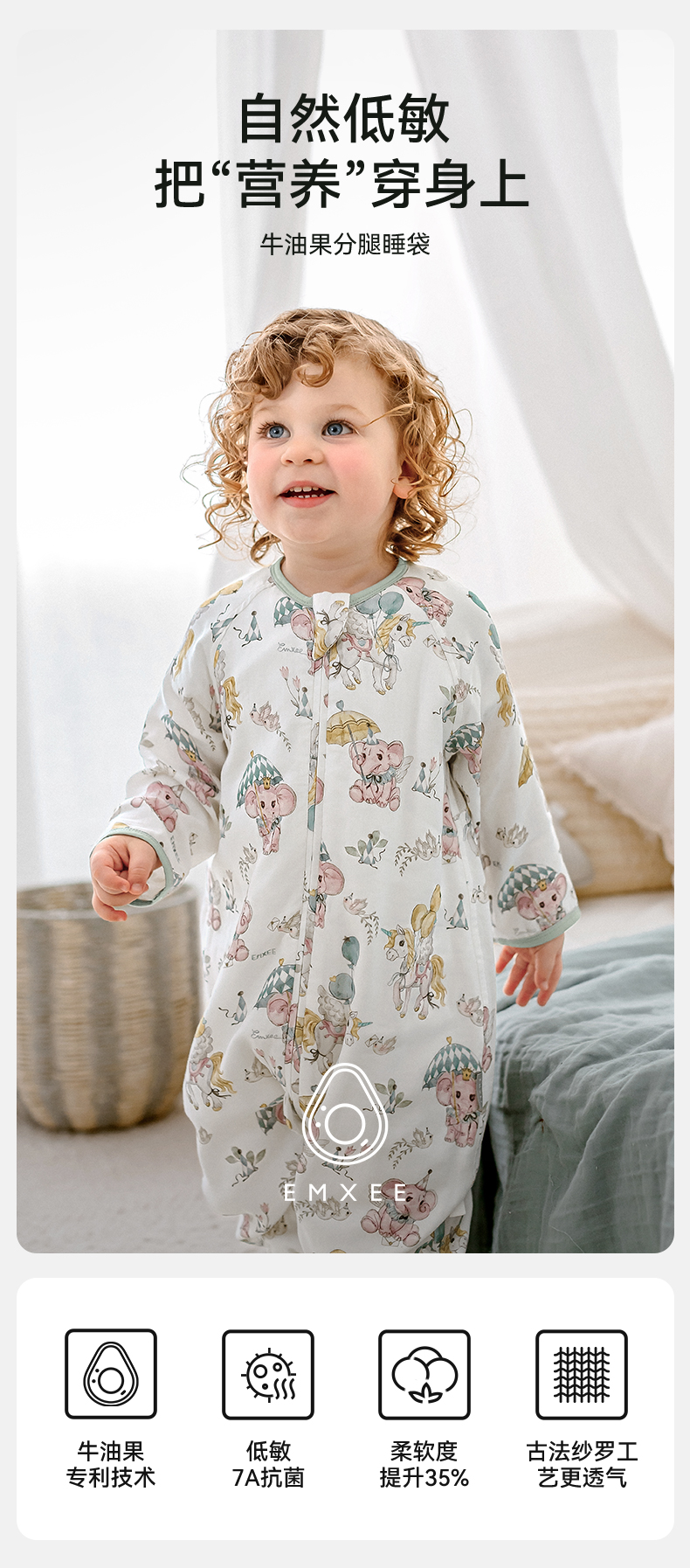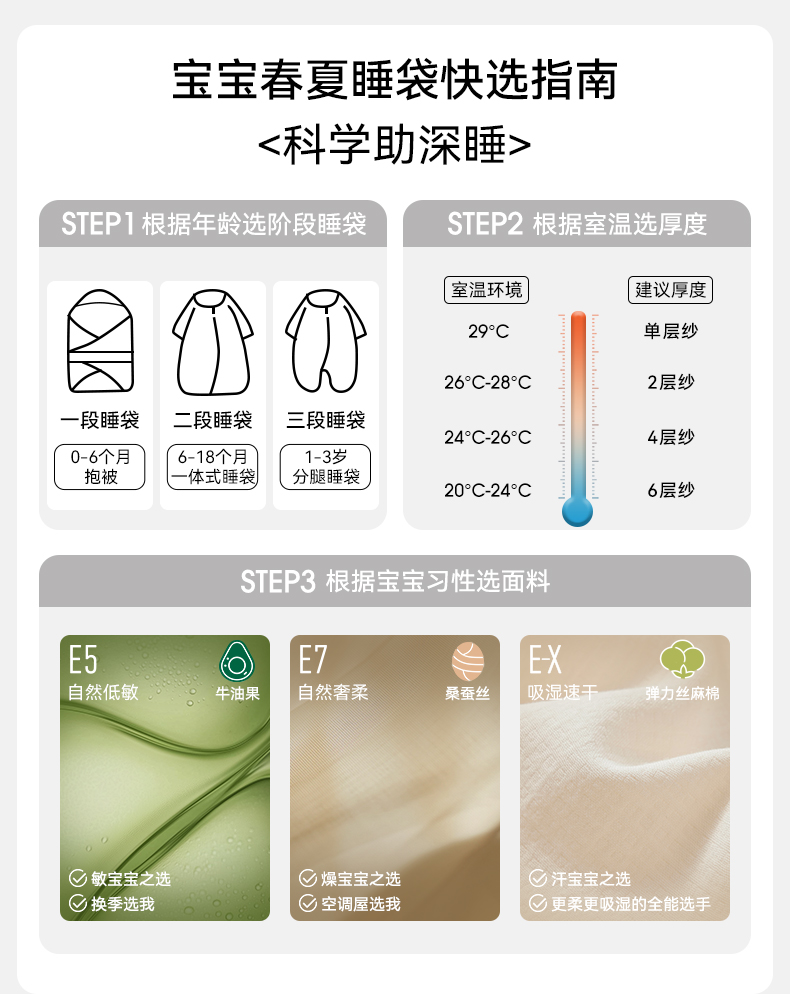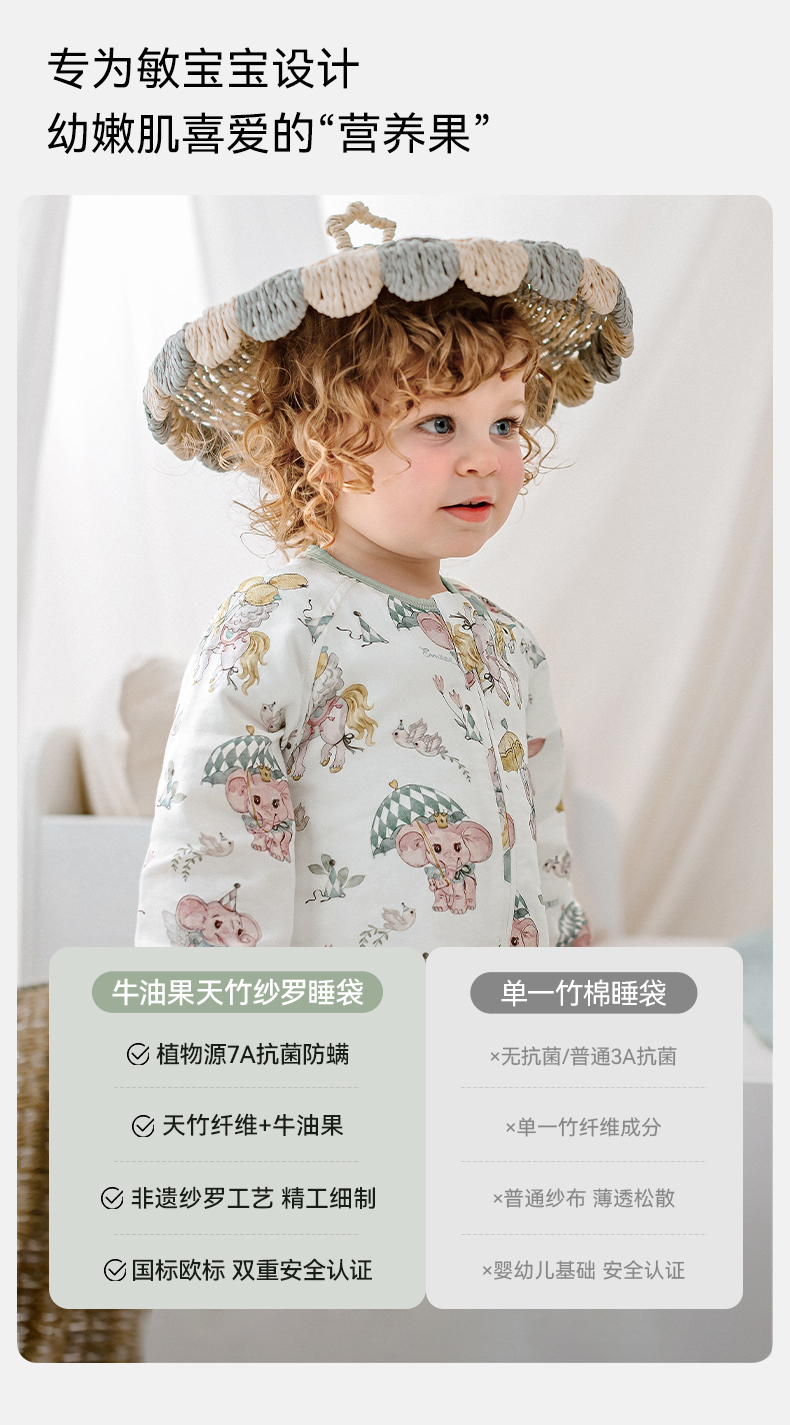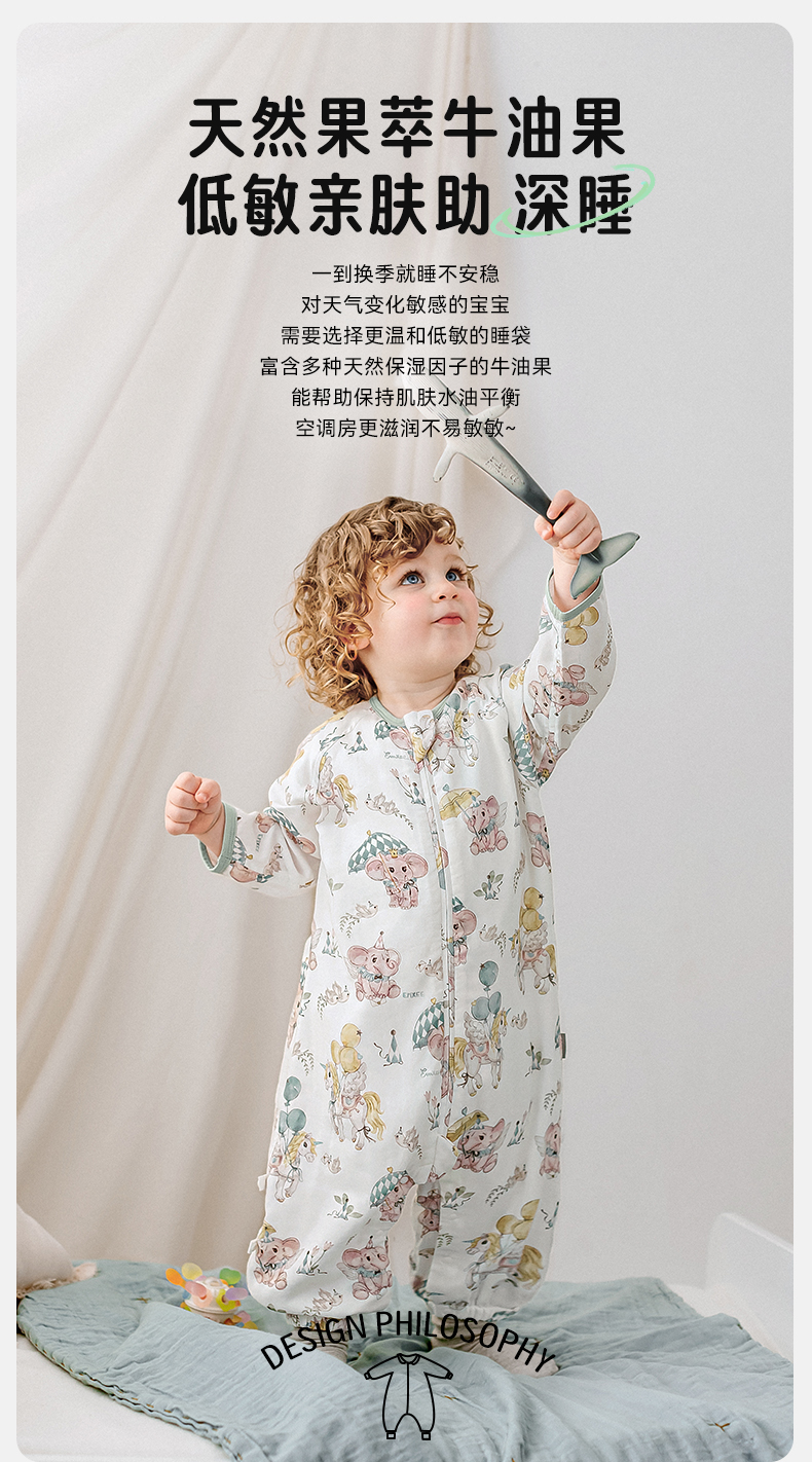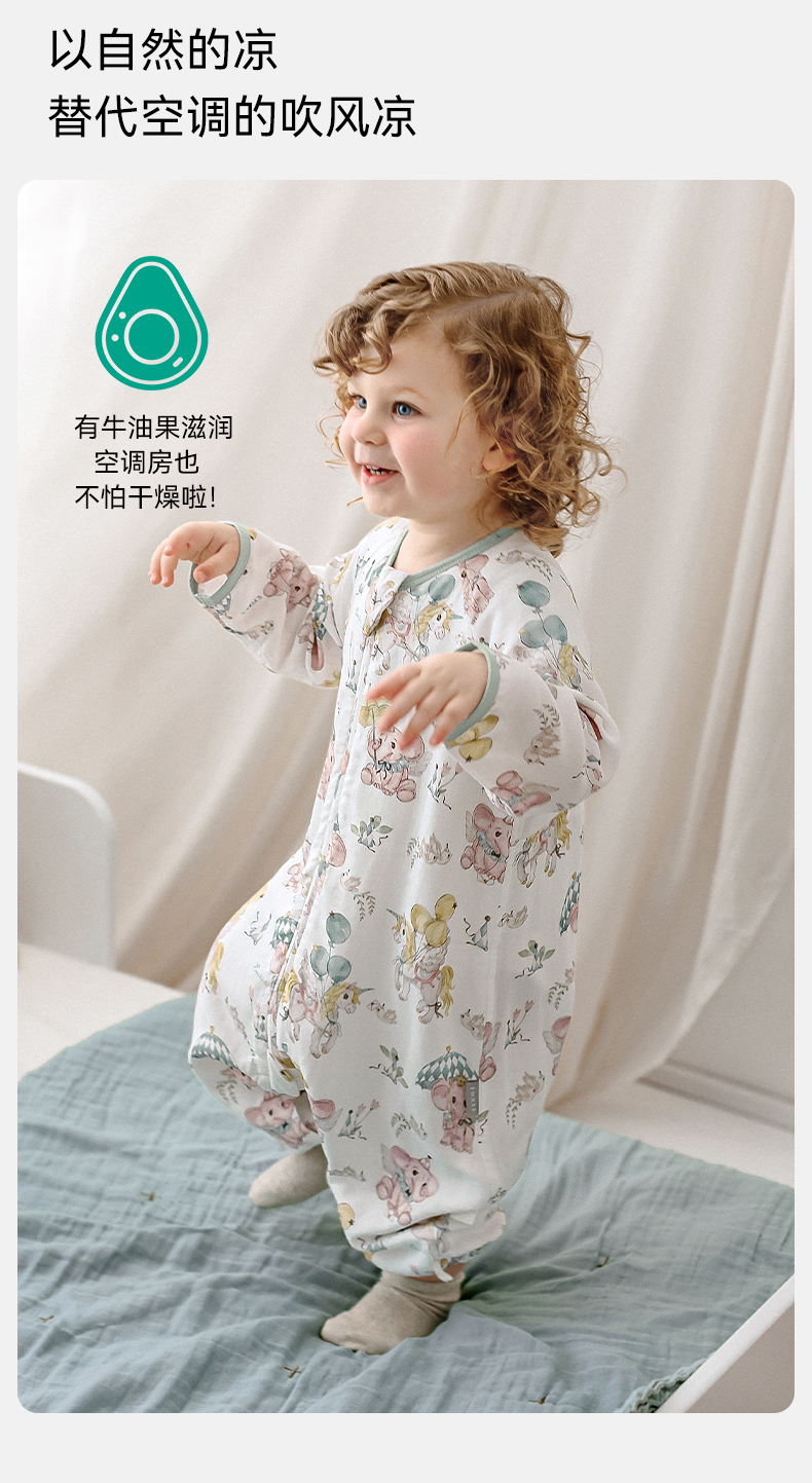 【宝宝安睡】嫚熙婴儿睡袋牛油果低敏宝宝薄款睡袋儿童中大童四季通用防踢被