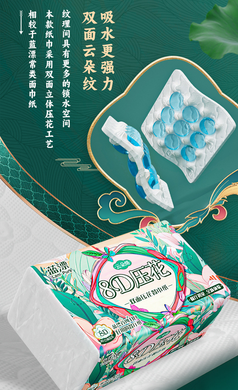 「整箱34包!8D压花款」蓝漂8D压花抽纸大包纸巾 卫生纸整箱居家日用婴儿面巾纸