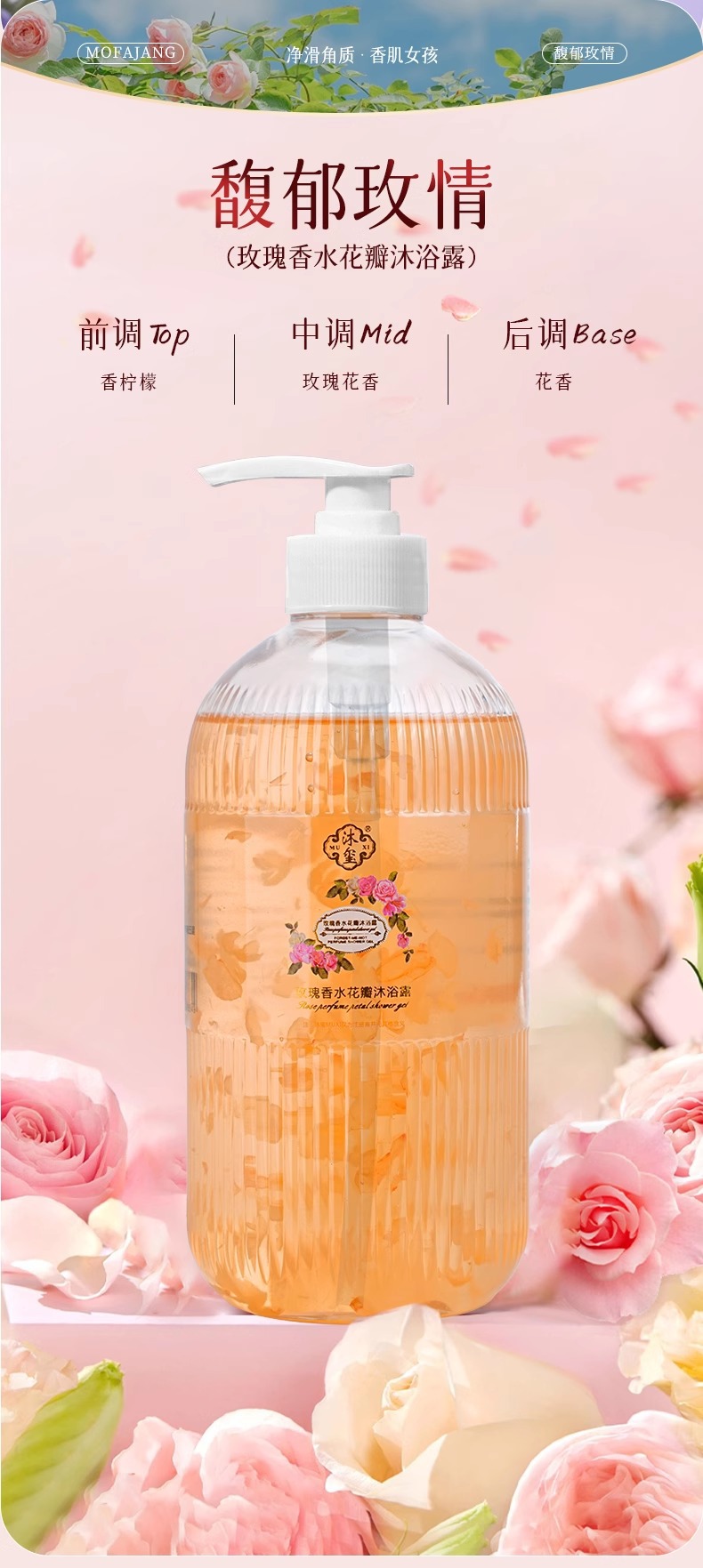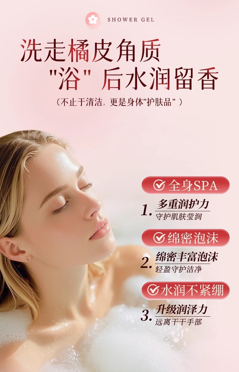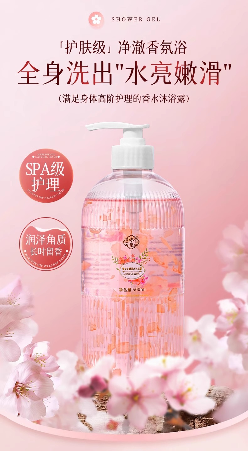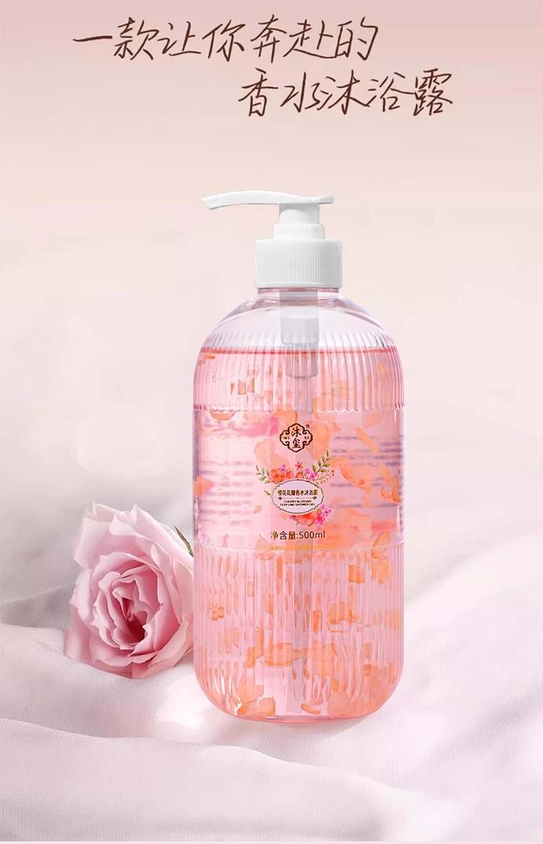 玫瑰樱花花瓣沐浴露嫩肤留香香氛瓶装精粹家用大容量厂家批发跨境