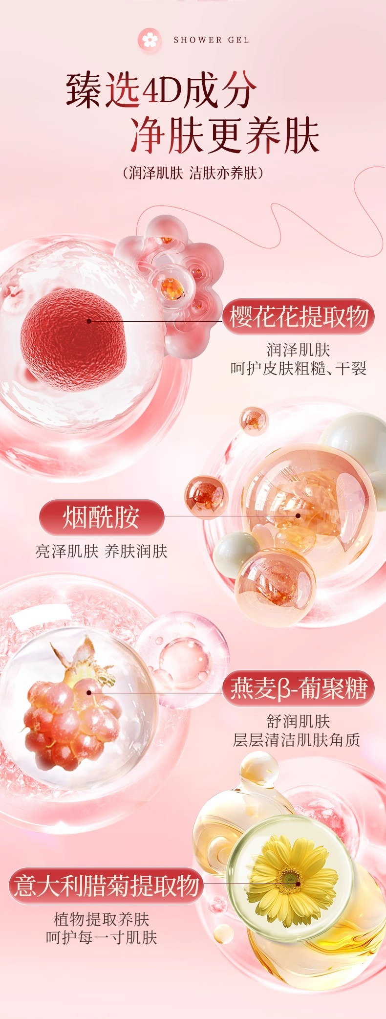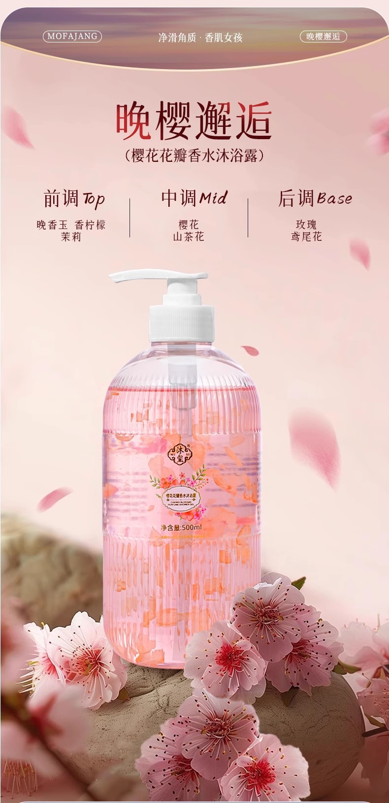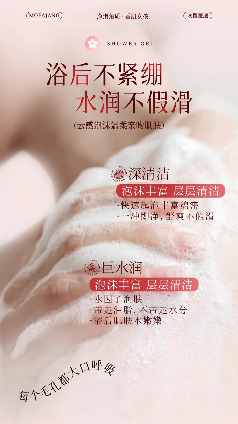 玫瑰樱花花瓣沐浴露嫩肤留香香氛瓶装精粹家用大容量厂家批发跨境