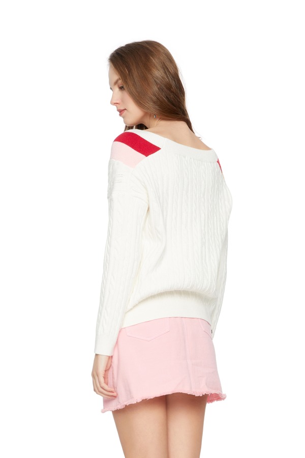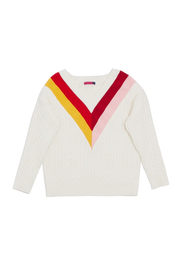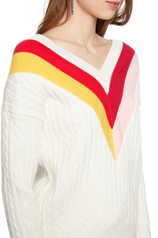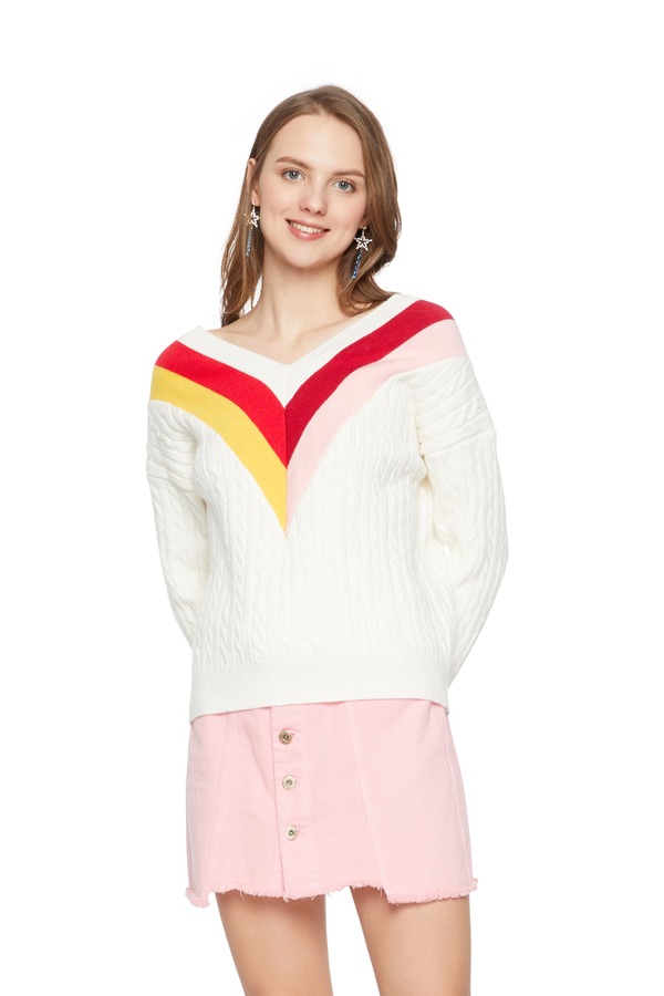 AVA 拼色V字条纹针织衫 5663