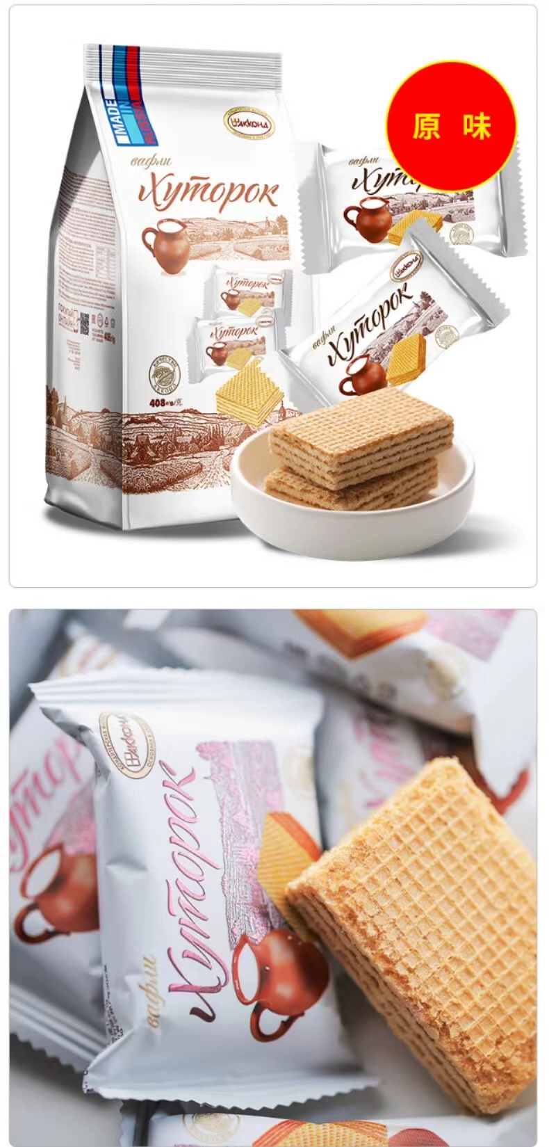 【中欧班列精选】 俄罗斯进口阿孔特小农庄牛奶味威化饼干408g/袋TC
