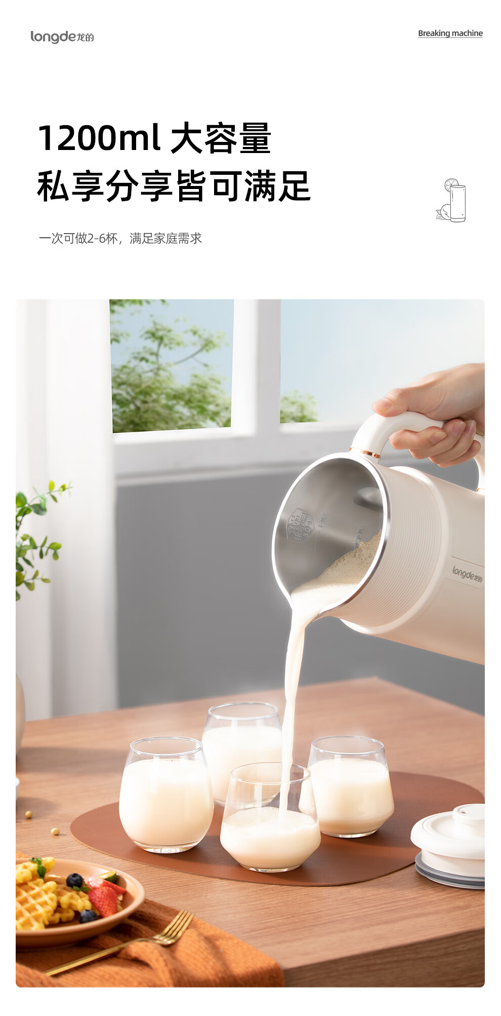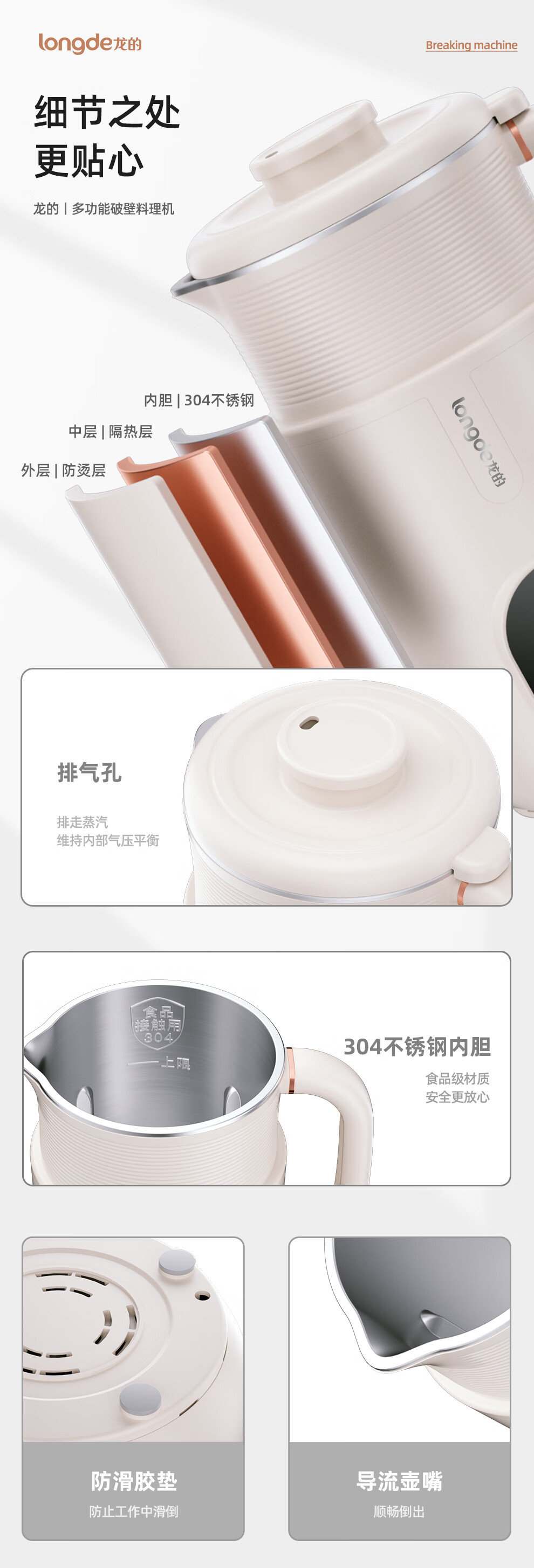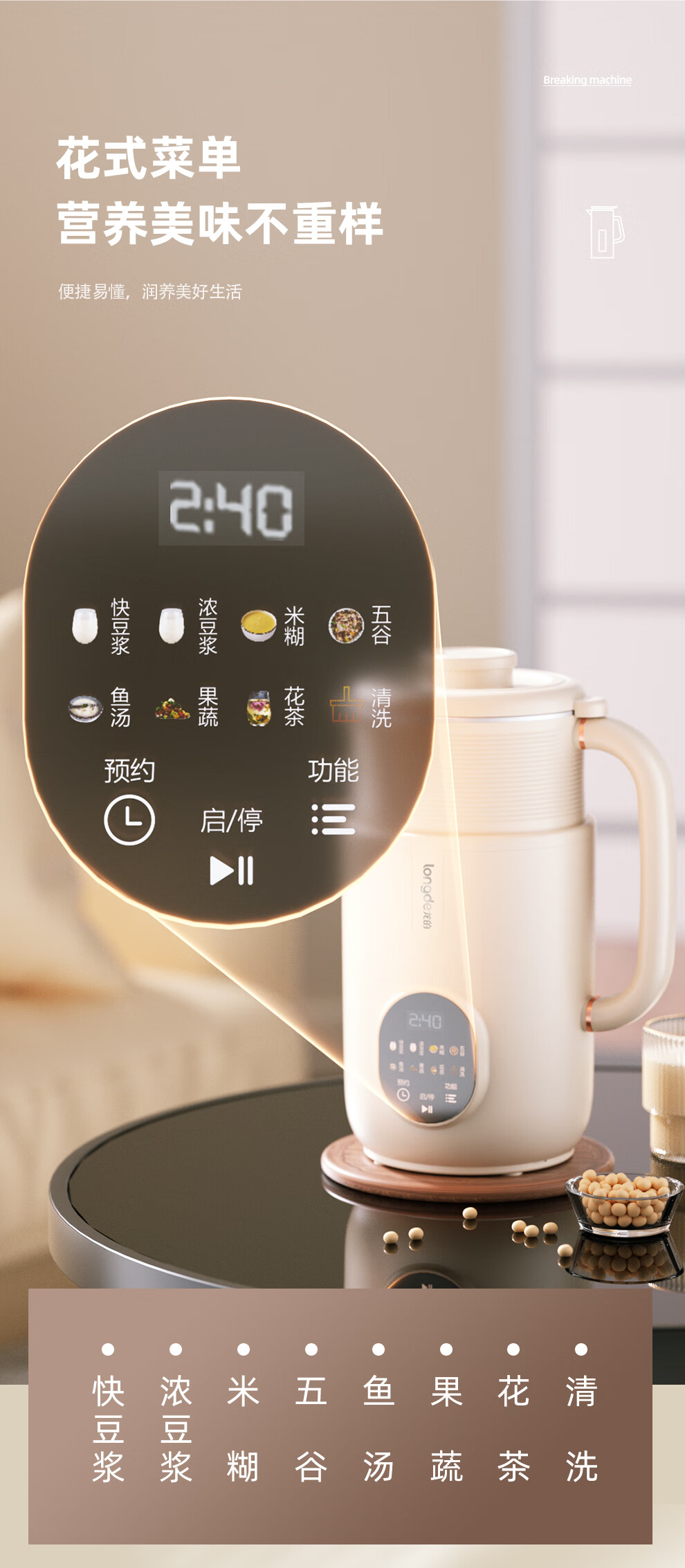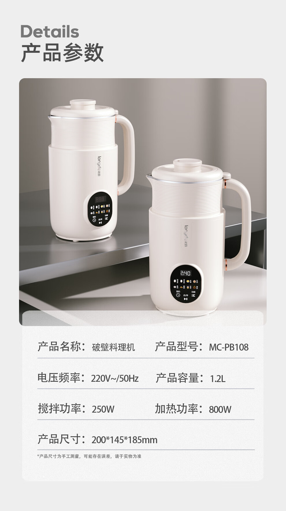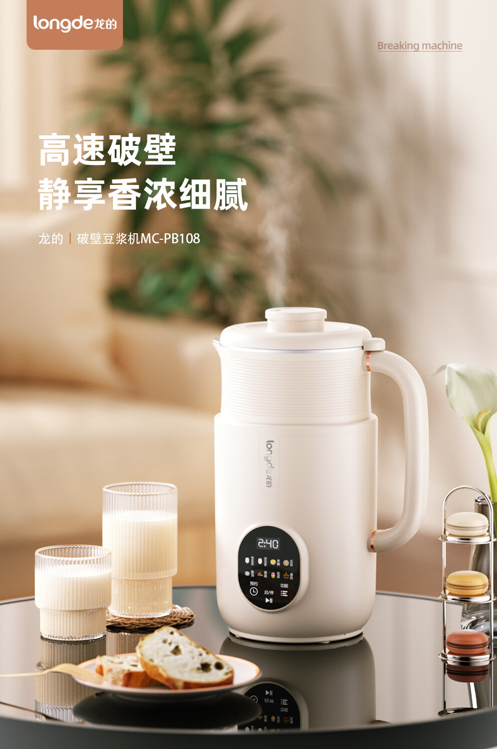 【小家电】龙的破壁豆浆机家用304不锈钢豆浆机多功能料理机辅食机一键清洗 MC-PB108 HF