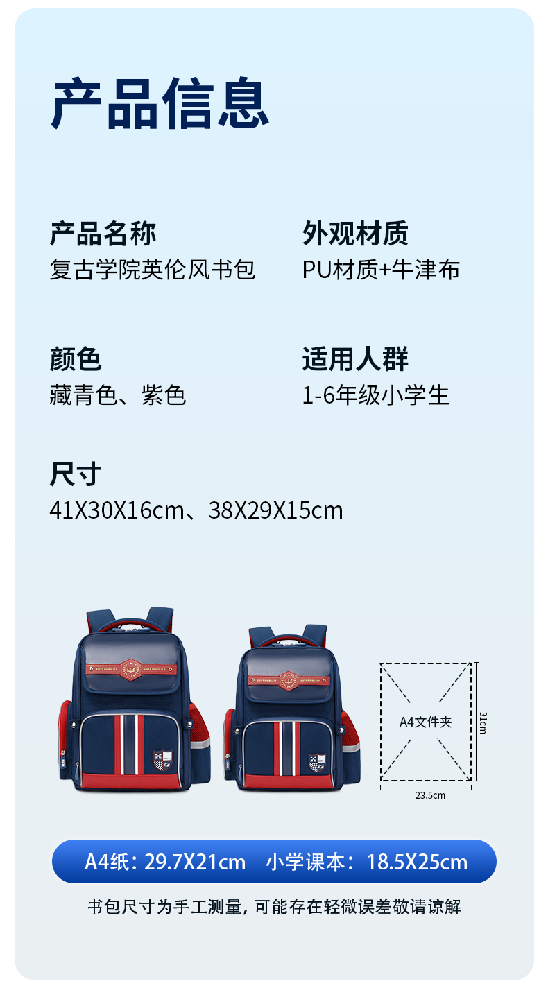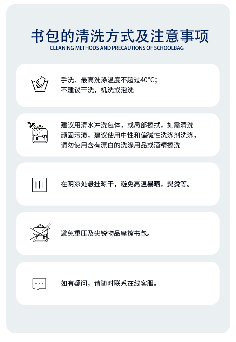 PS:书包分为初高中生款和小学生款(大号、小号),下单注意确定尺寸,避免拍大!!!