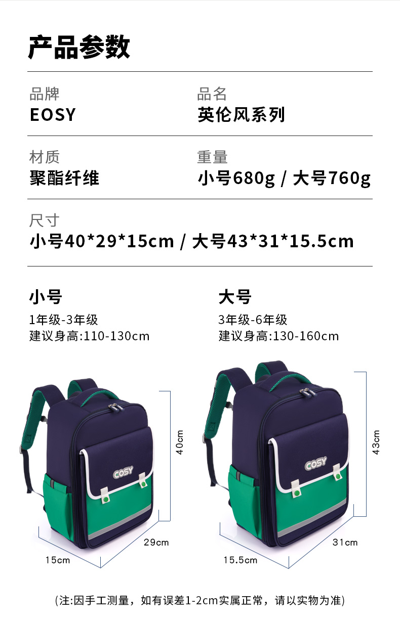 【EOSY 学生书包合集】均衡受力 减压不勒肩 护脊减负 有效预防孩子驼背 保护脊椎