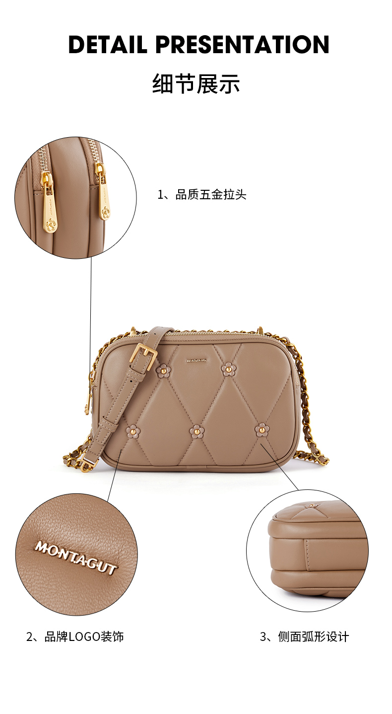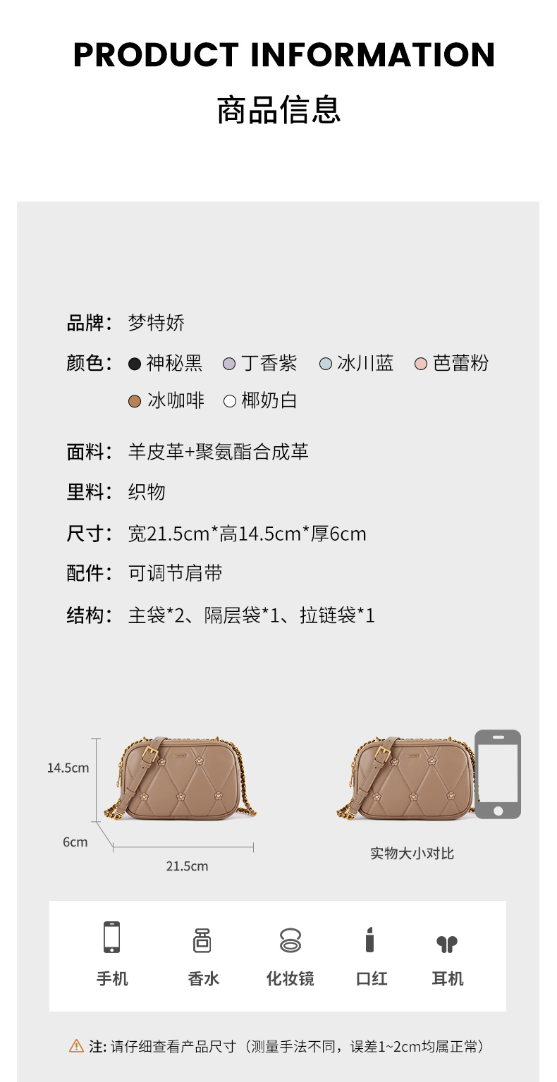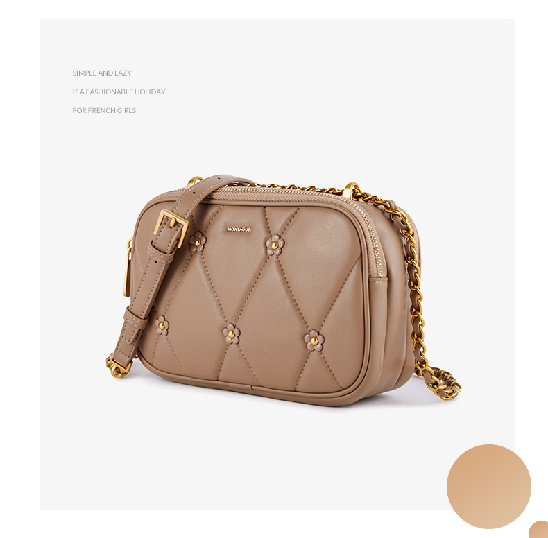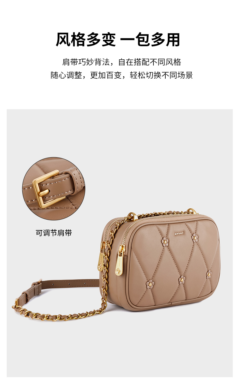 梦特娇法式时尚斜挎包女士通勤菱格羊皮女包