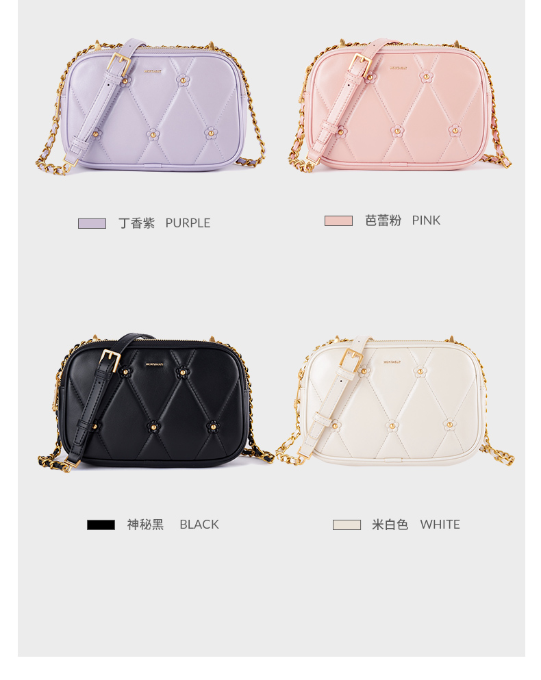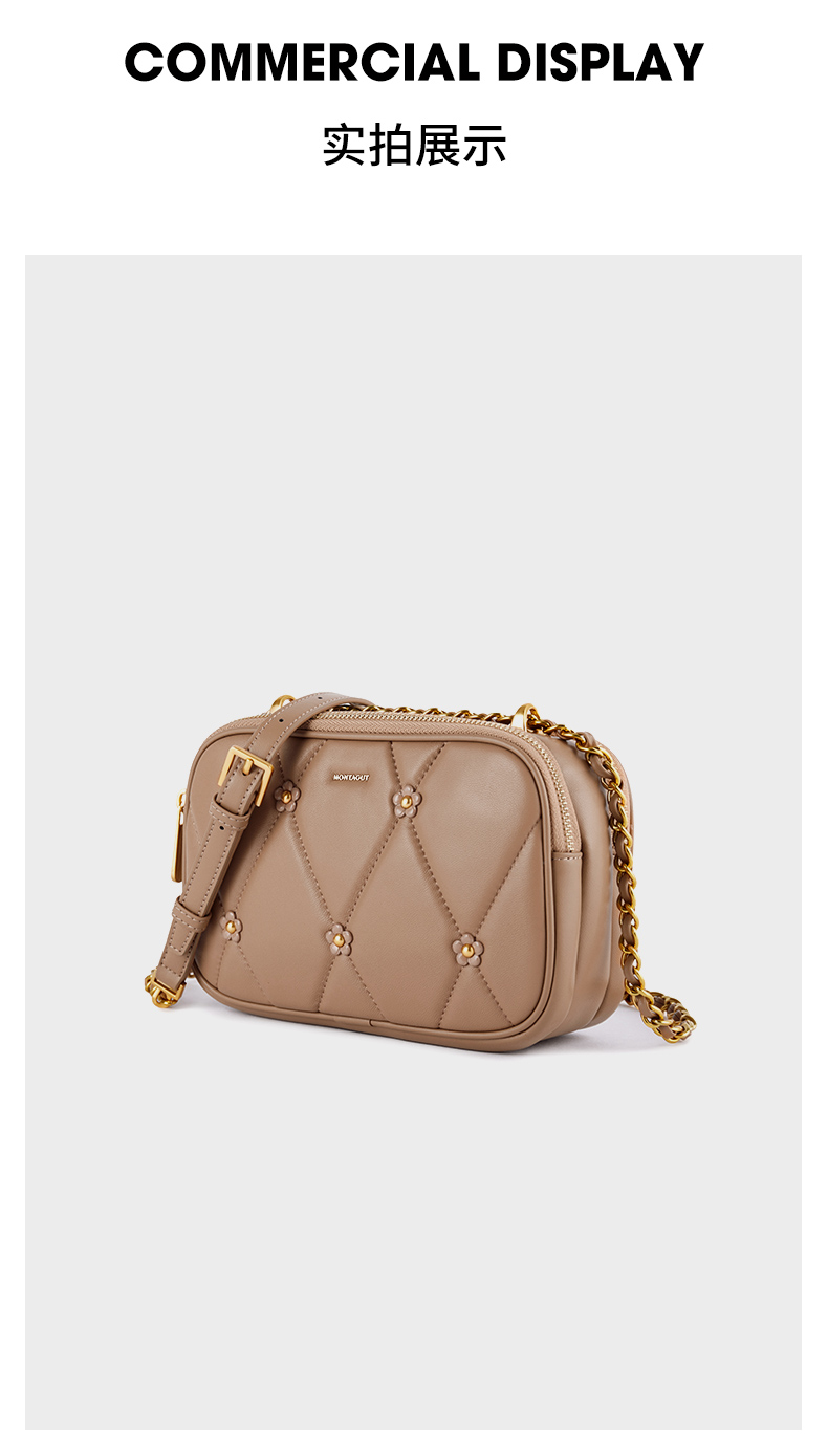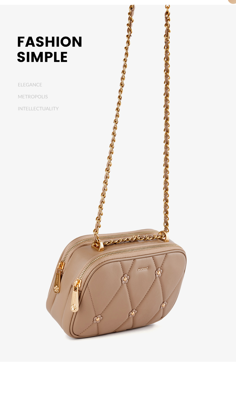 梦特娇法式时尚斜挎包女士通勤菱格羊皮女包