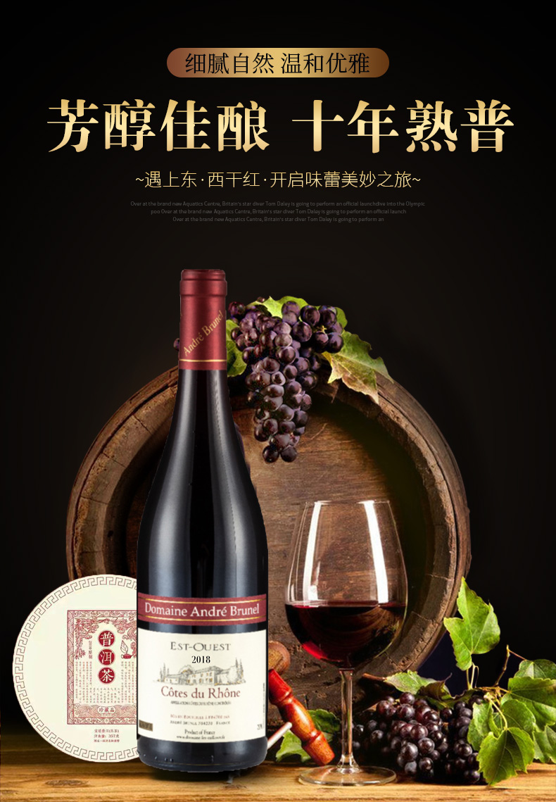法国罗纳河谷加佑东西干红750ml+十年普洱茶357克 礼盒装[福利品]