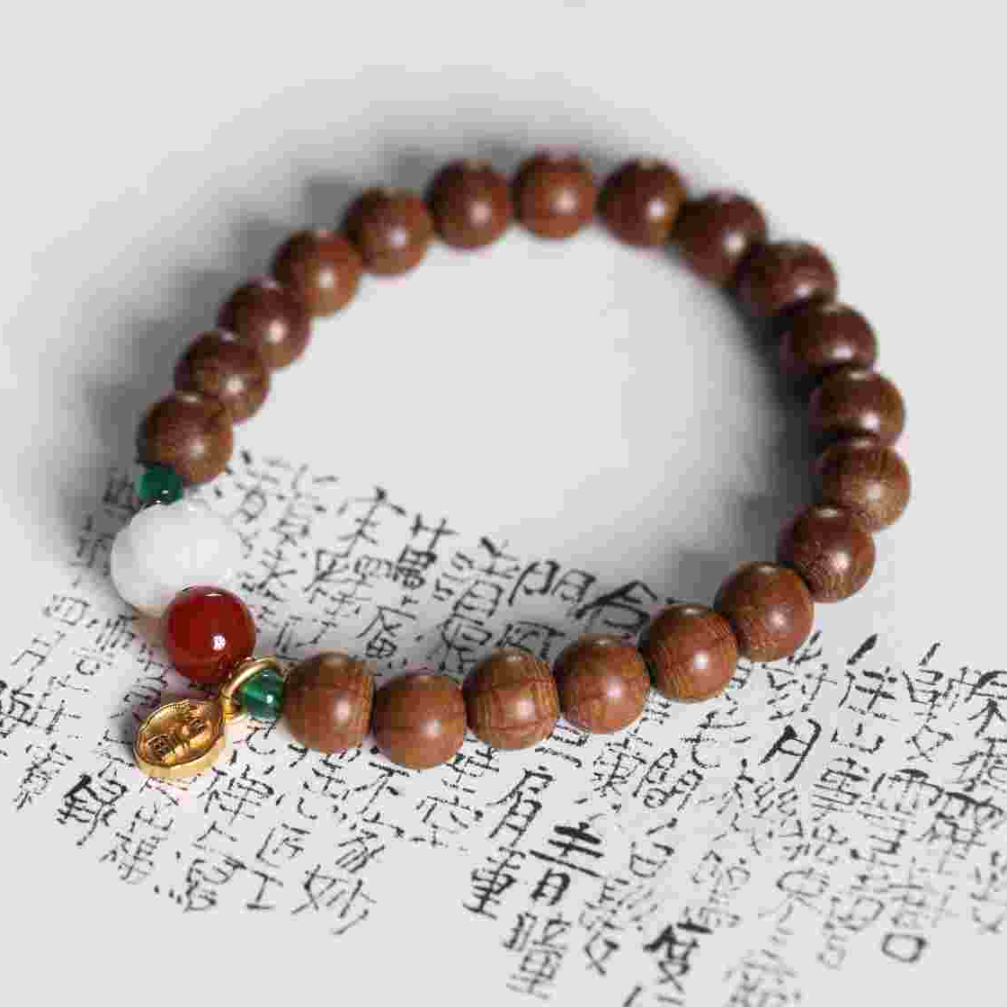 | 配件 | 红玛瑙,绿玛瑙,铜飞碟,白菩提根南瓜珠,沙金招财图寿吊牌 |