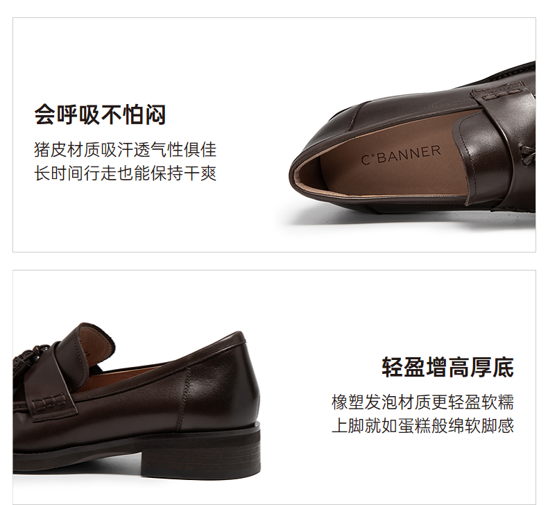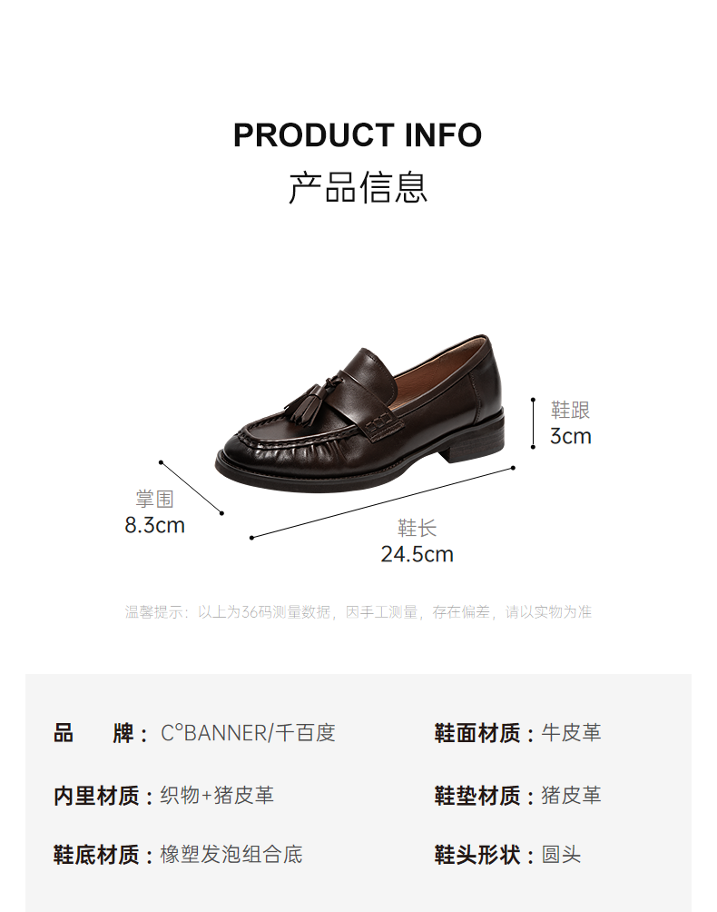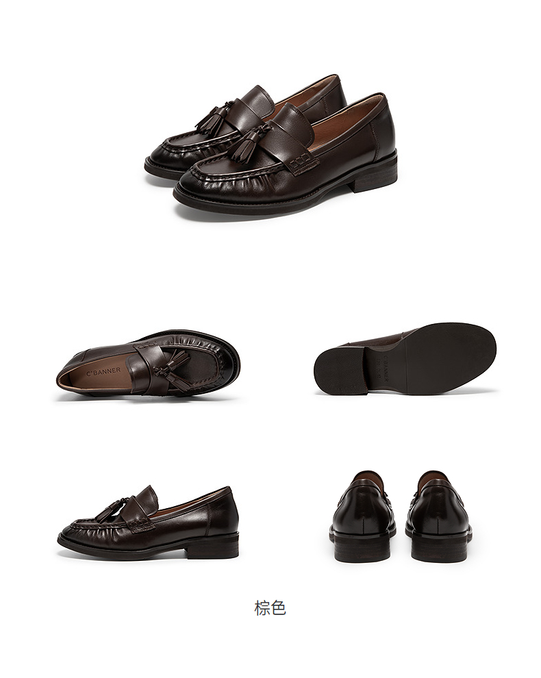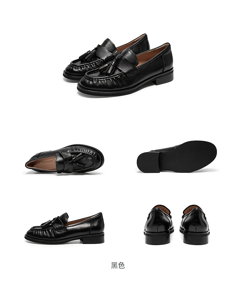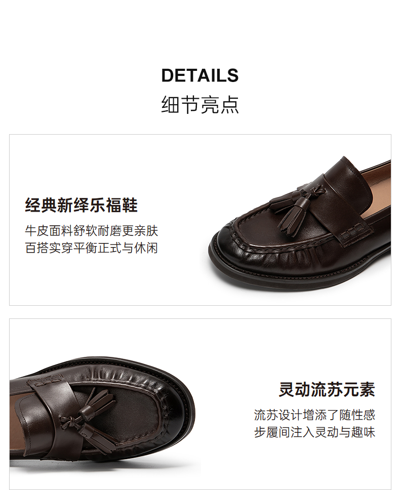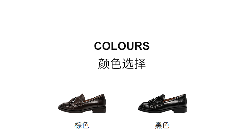 【李兰迪同款】千百度流苏乐福鞋女款牛皮褶皱小皮鞋A25132309