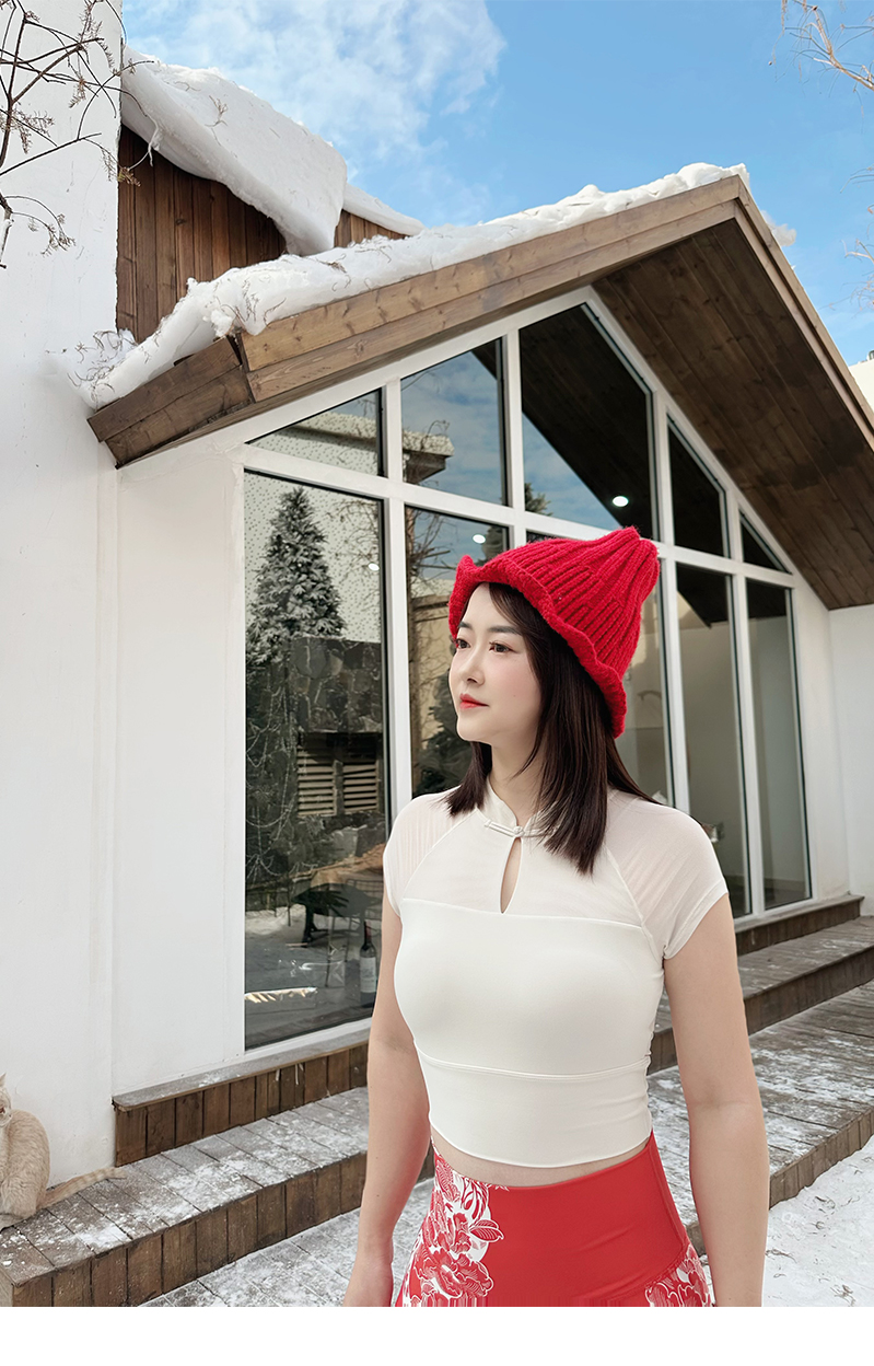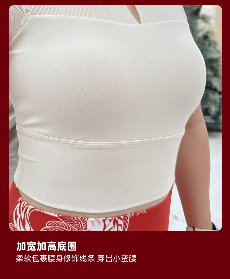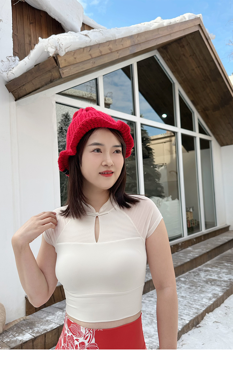壁虎瑜伽【2412SY322】国风网纱短袖(一体式胸垫)【5天发货】