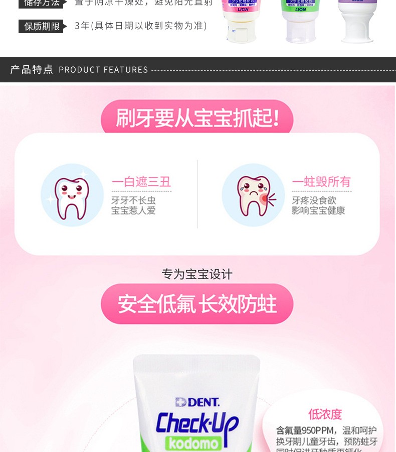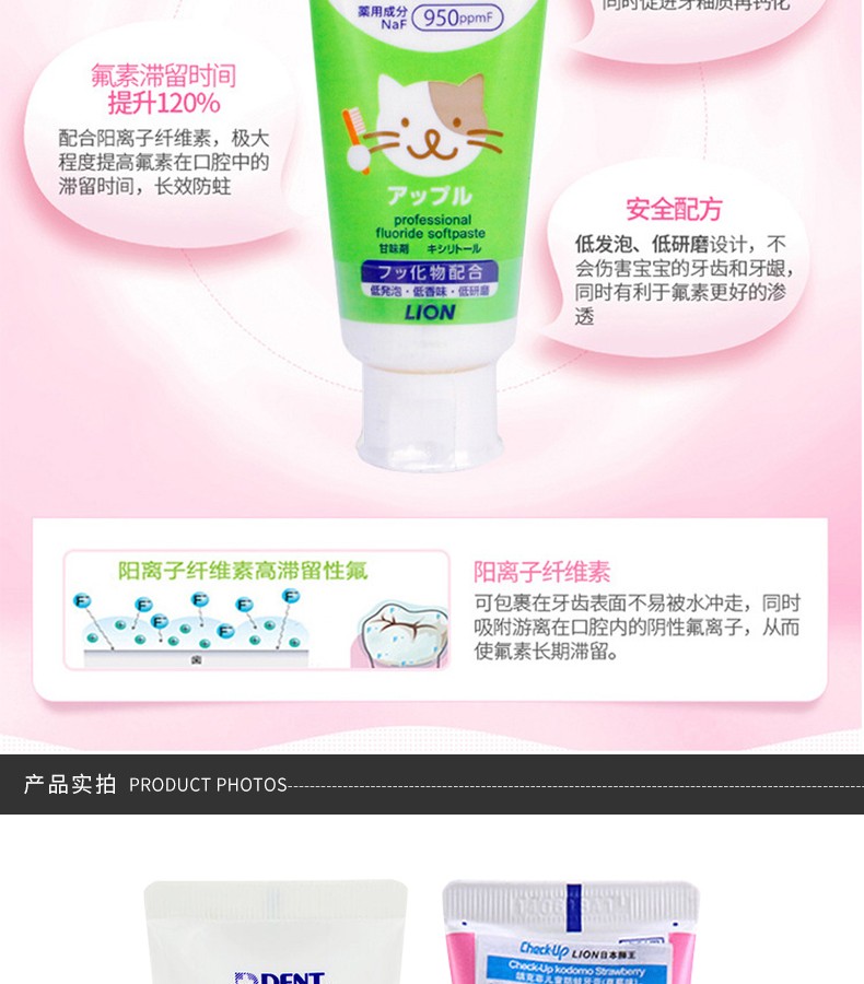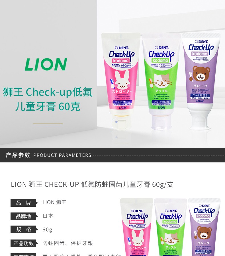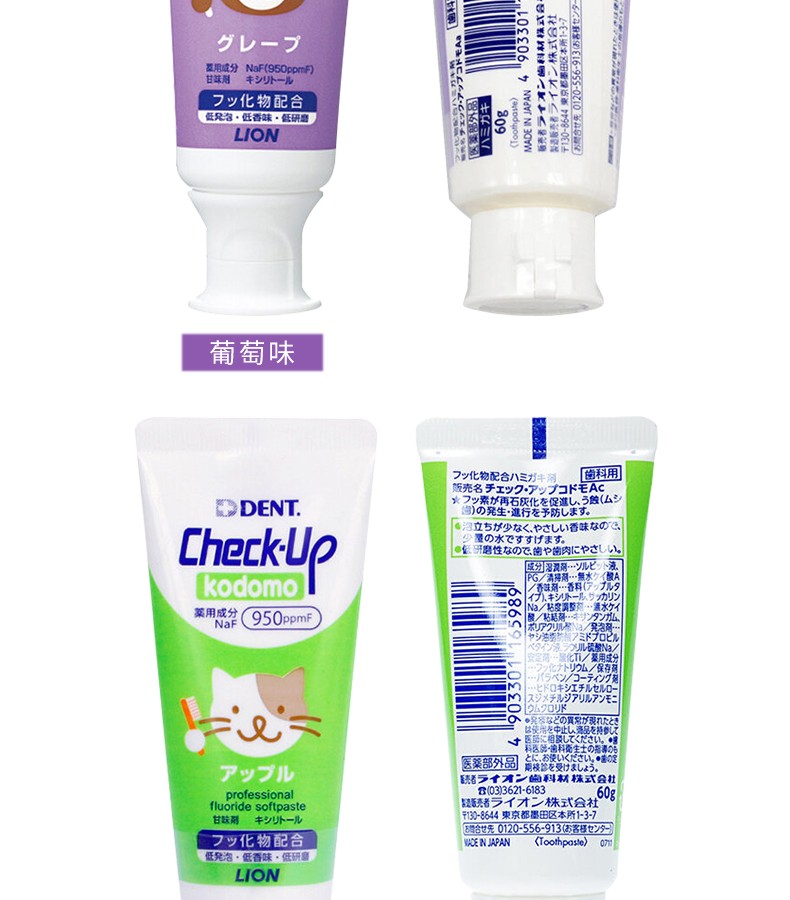LION狮王 CHECK-UP儿童牙膏 60G 草莓 葡萄 苹果 日本