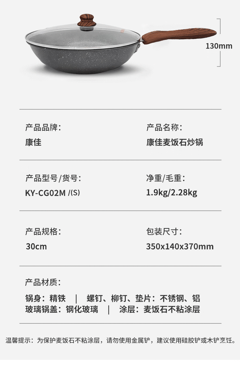 康佳(KONKA)家用不粘锅炒锅麦饭石燃气灶电磁炉通用含玻璃盖