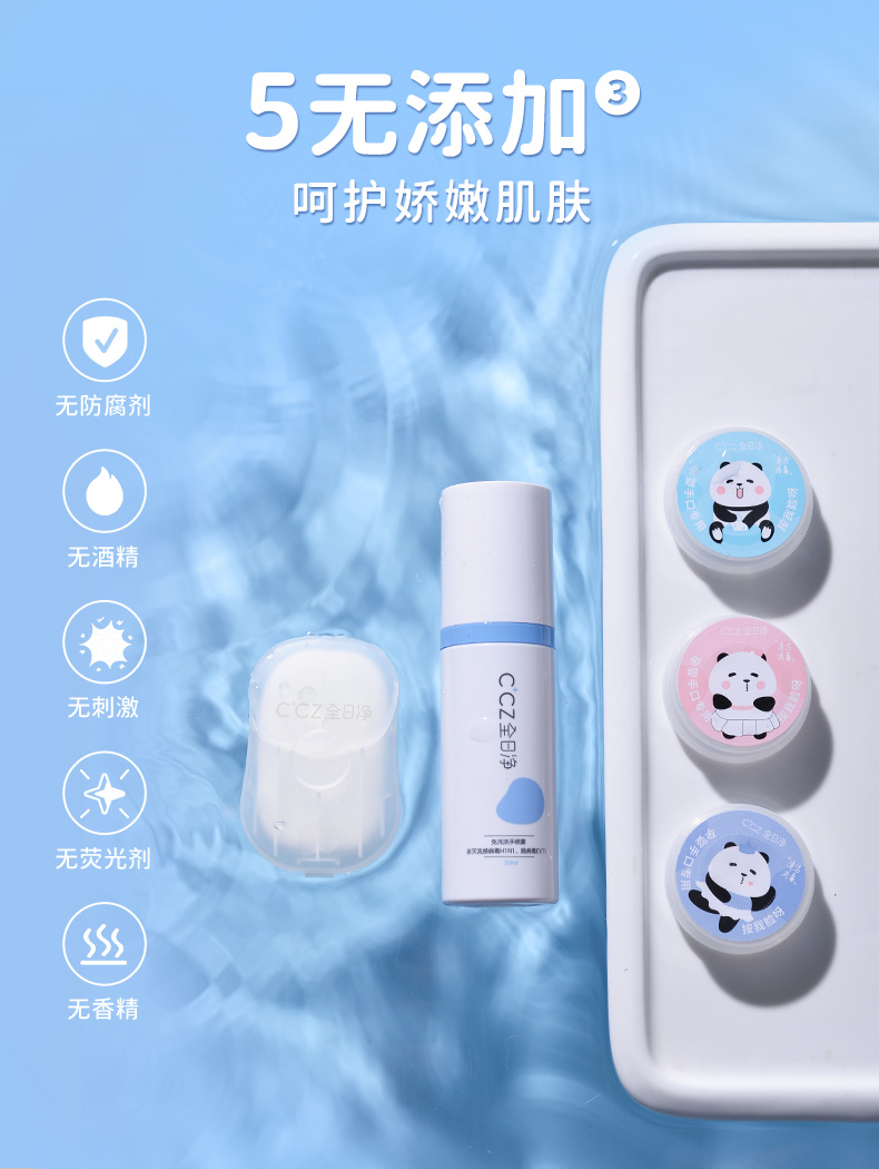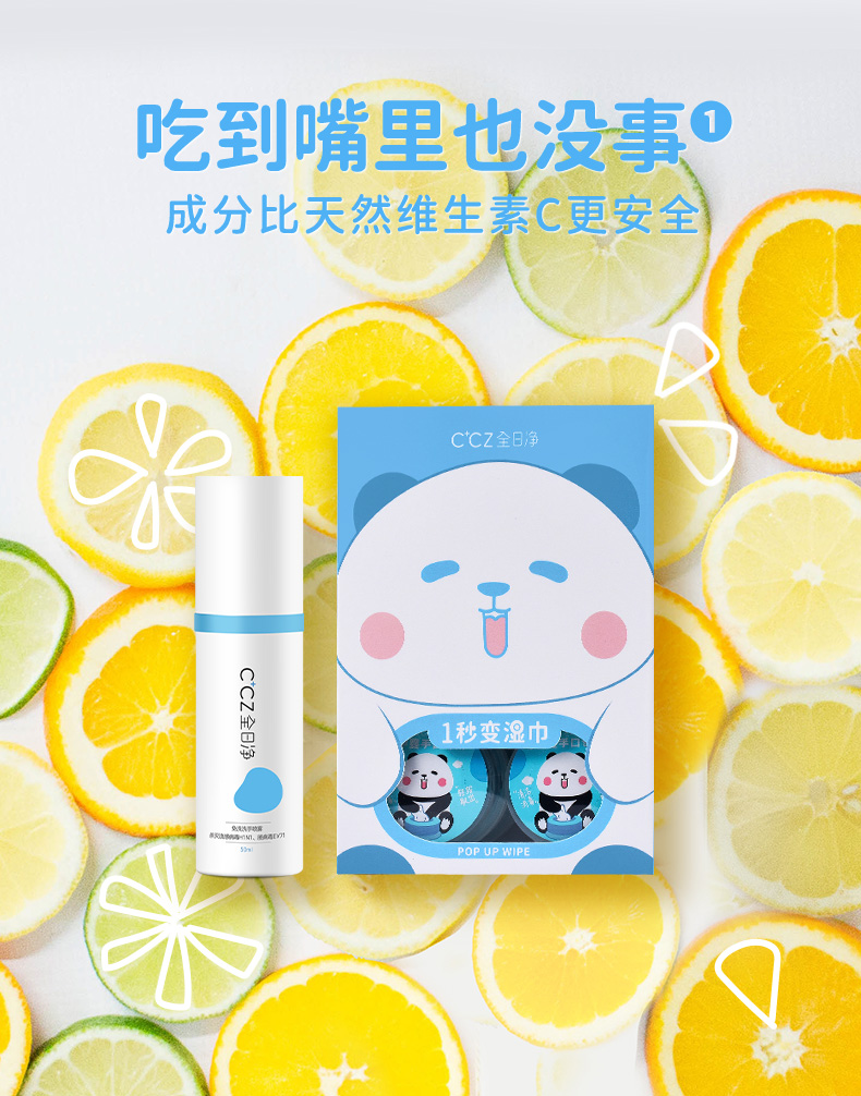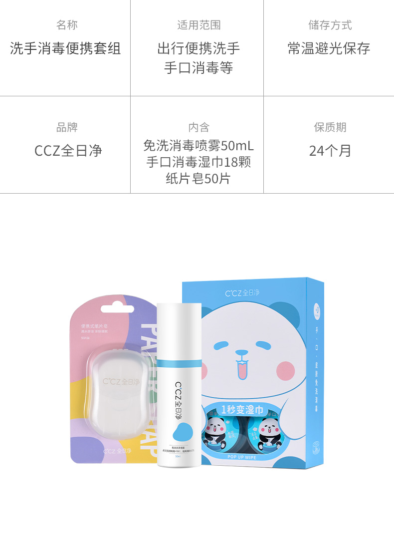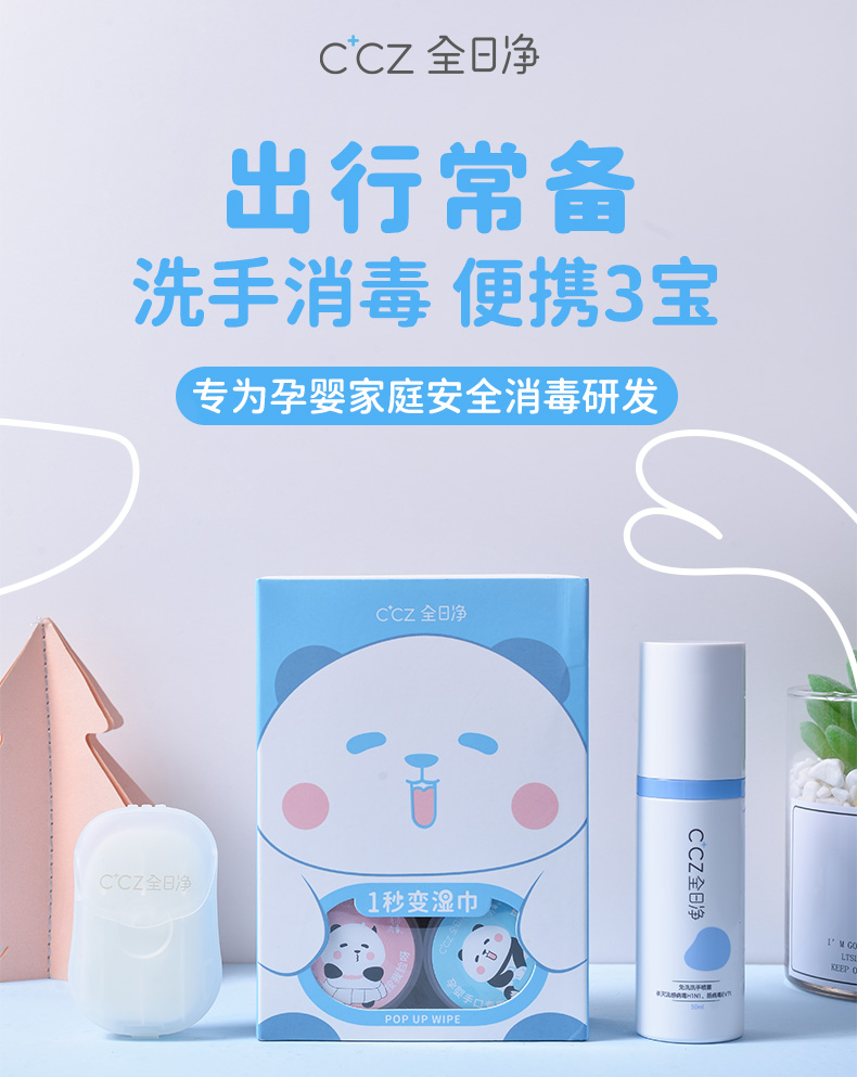 CCZ全日净儿童婴儿便携可入口杀菌消毒液喷雾湿巾香皂片组合套装