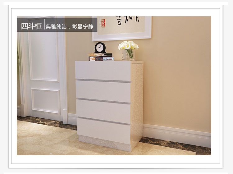 HMJIA 四斗柜抽屉柜客厅卧室玩具柜储物柜抽屉式收纳柜暖白色G-C13004W 1678247