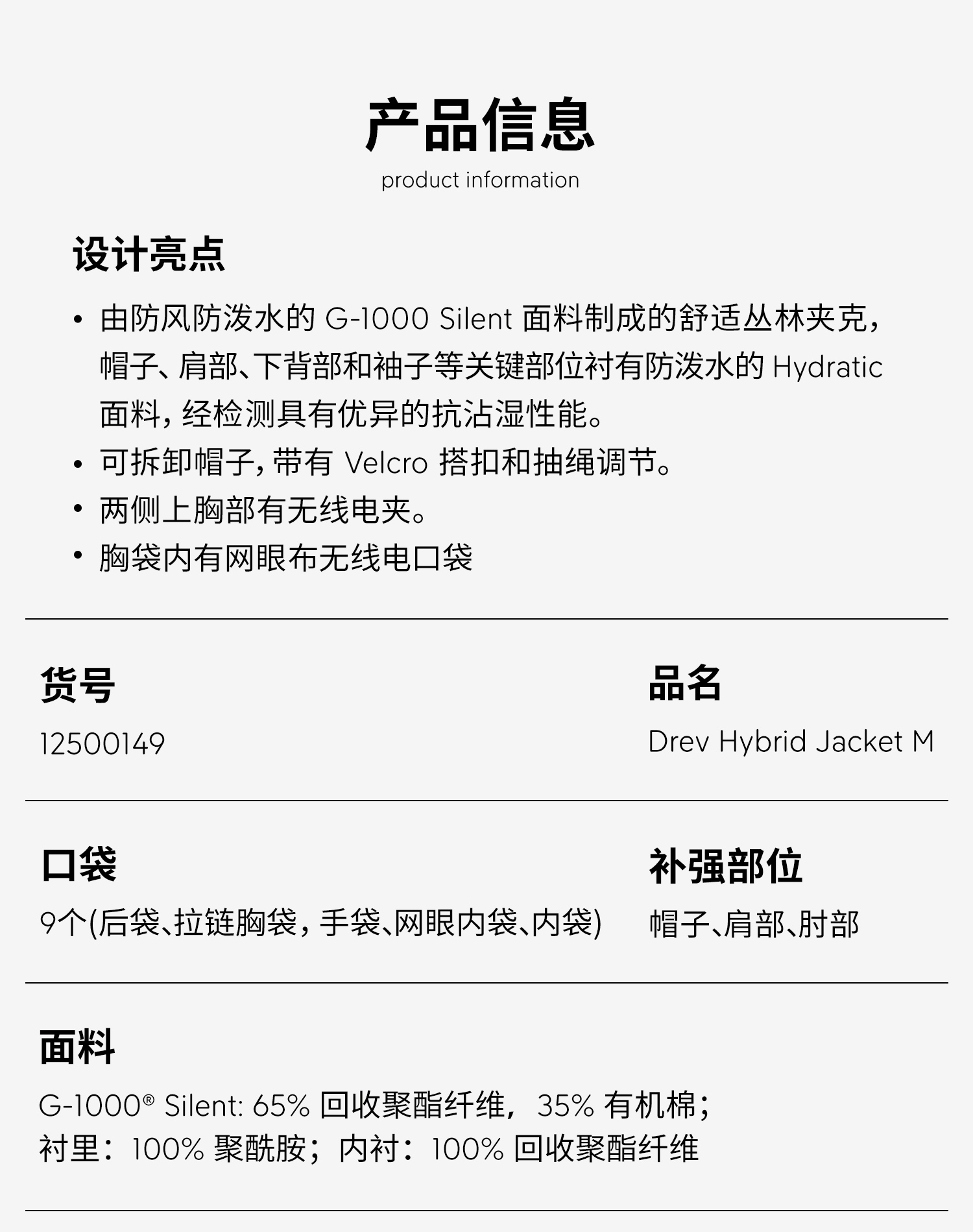 北极狐 户外防风防泼水夹克 G1000男士徒步耐磨工装外套12500149