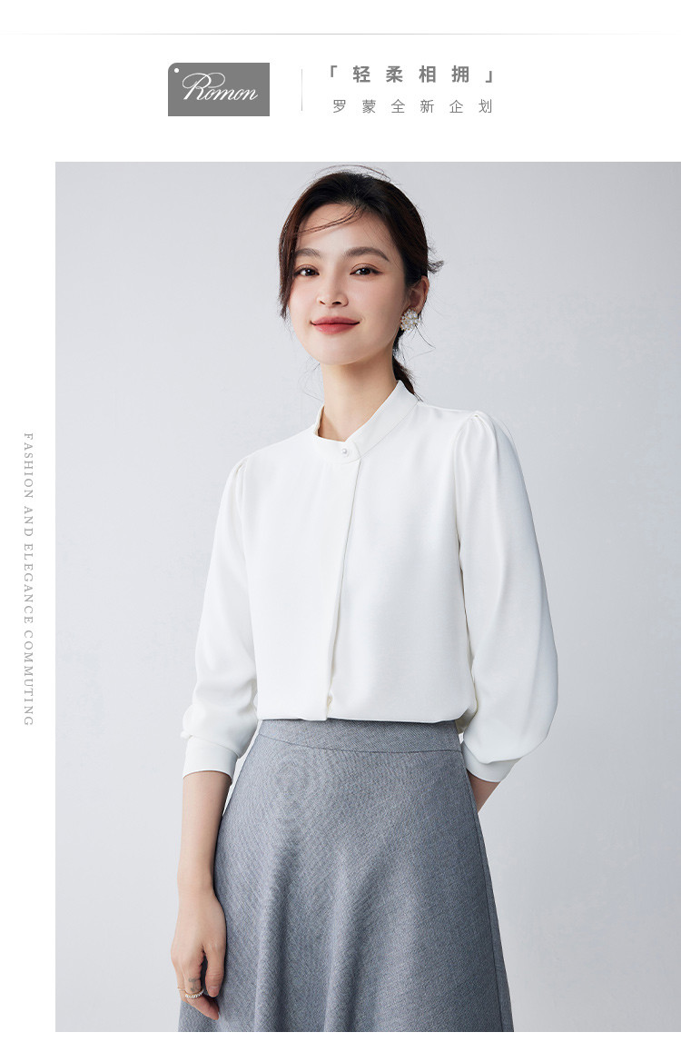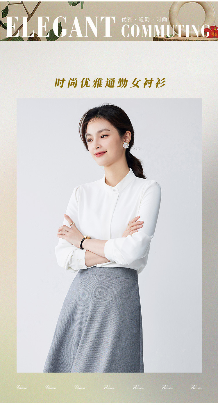 【精致简约】罗蒙四季款女式长袖衬衫商务通勤百搭清新衬衫衬衣女