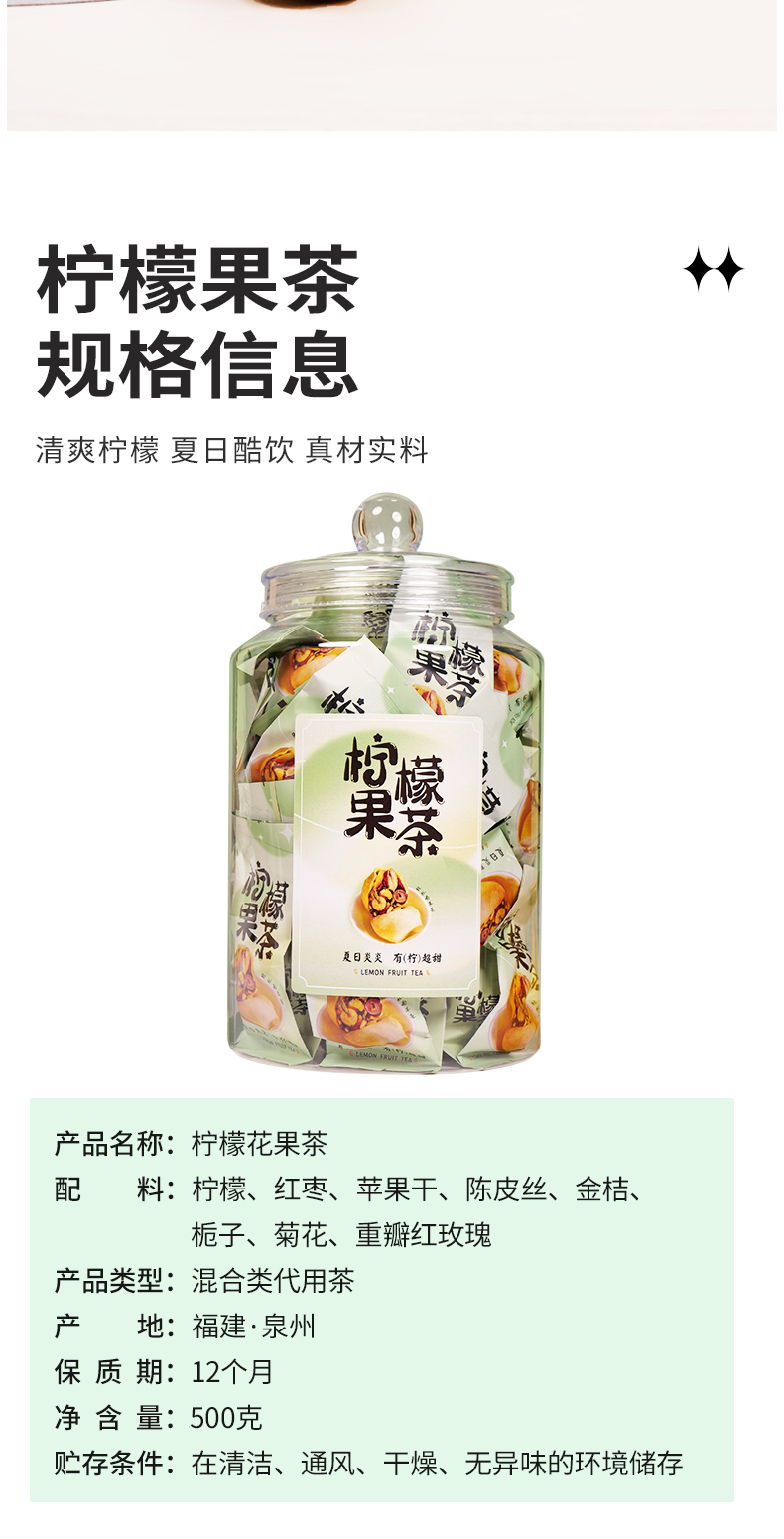 【推荐】福建柠檬花果茶500克罐装 清爽柠檬 爽口甘润
