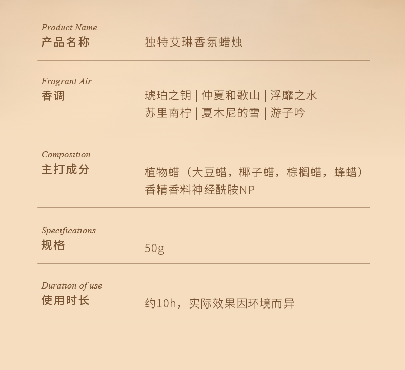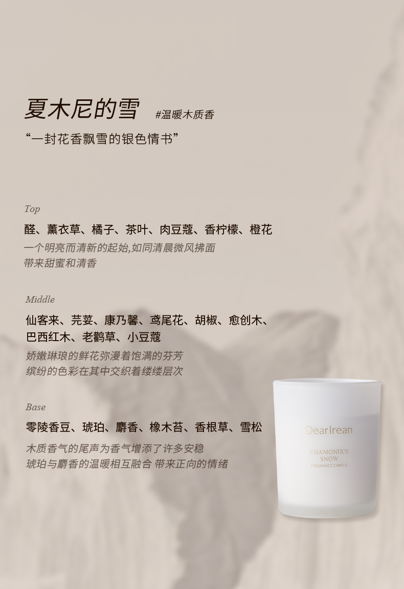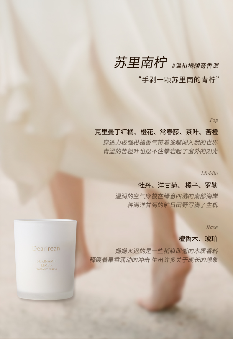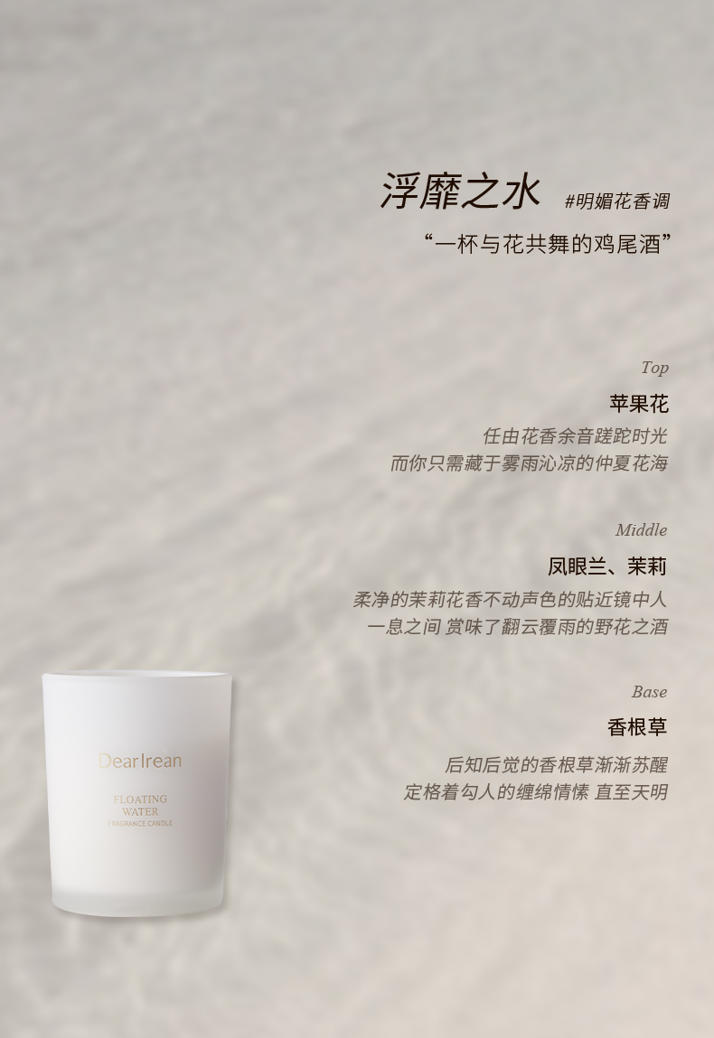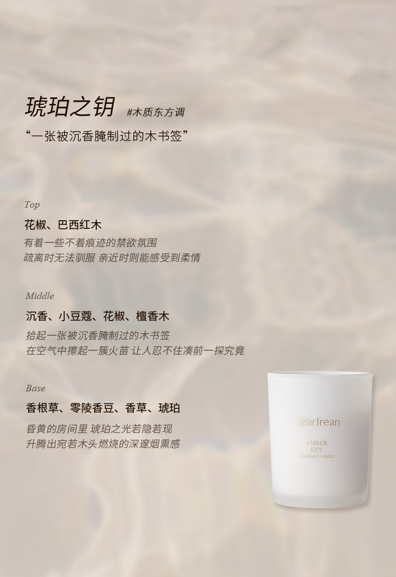 - DearIrean 独特艾琳,高定香氛生活品牌,拥有体•研究所,品牌致力于将高定香氛带入生活,同时倡导“以香之名,带给生活美好方式”的品牌理念,传递精致女性的爱、独立、自信。