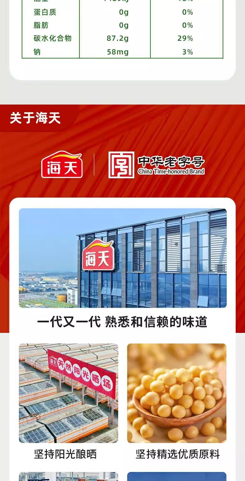 海天生抽老抽酱油500ml家用酿造红烧调料厨房调味品调味料