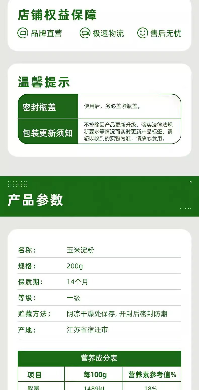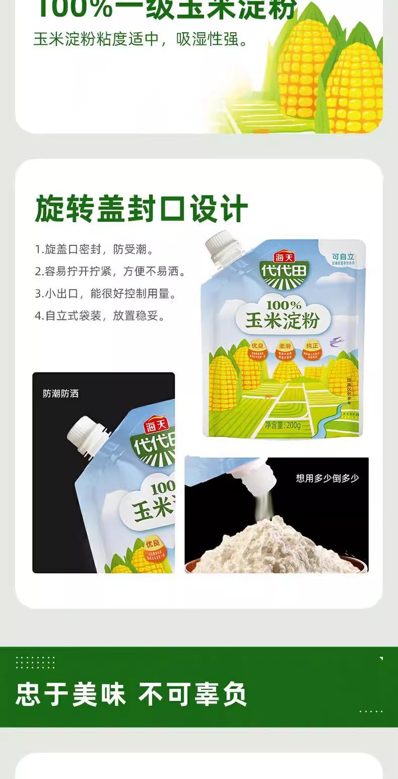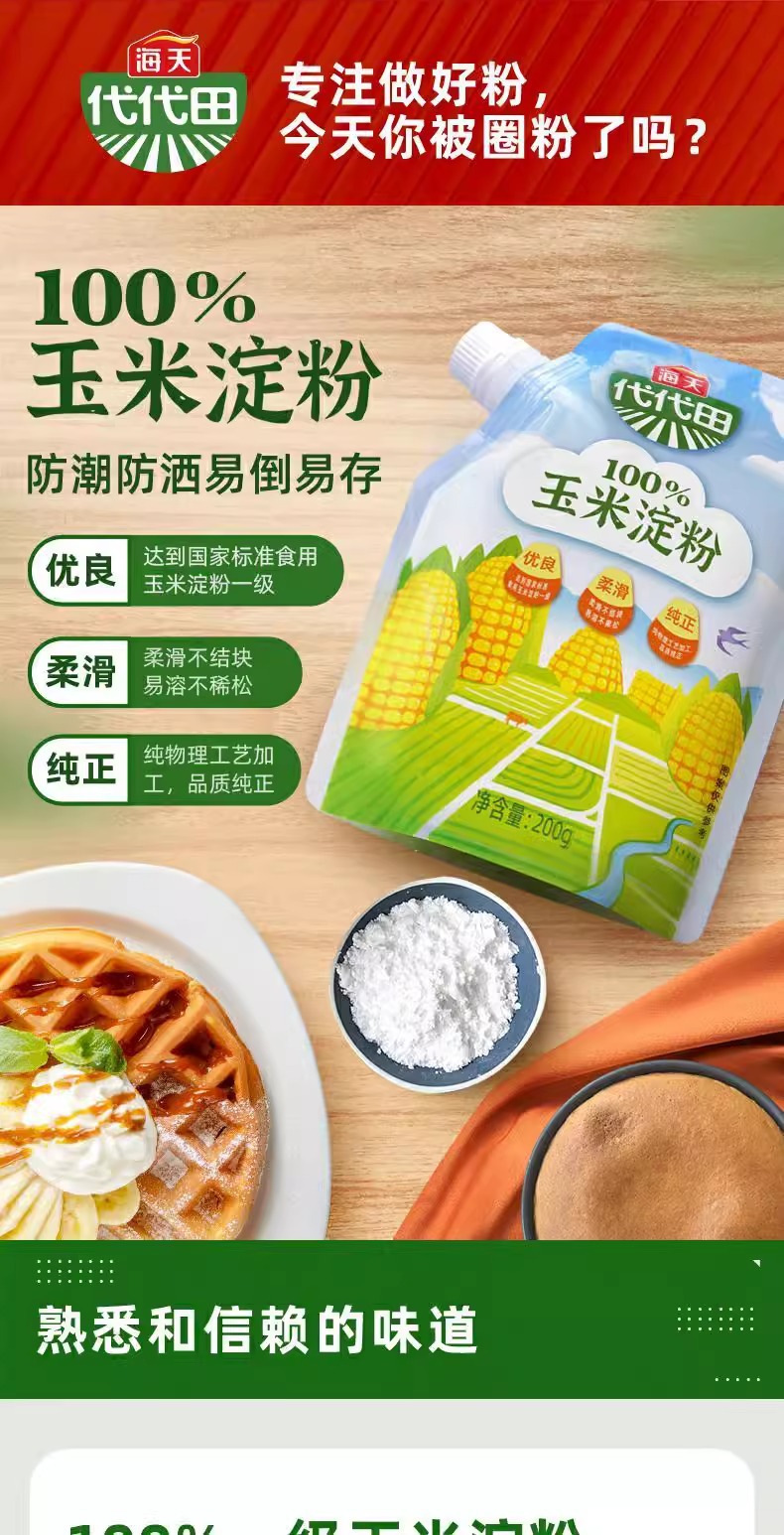 海天食用一级玉米淀粉200g烘焙原料家用马铃薯生粉勾芡专用粉芡粉