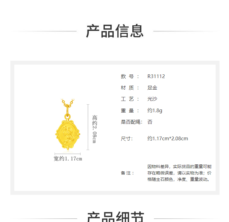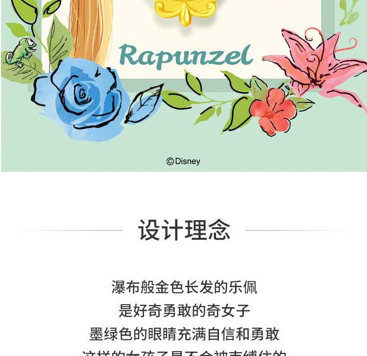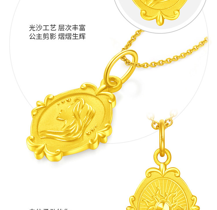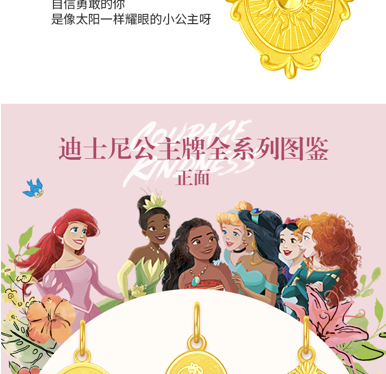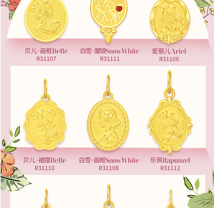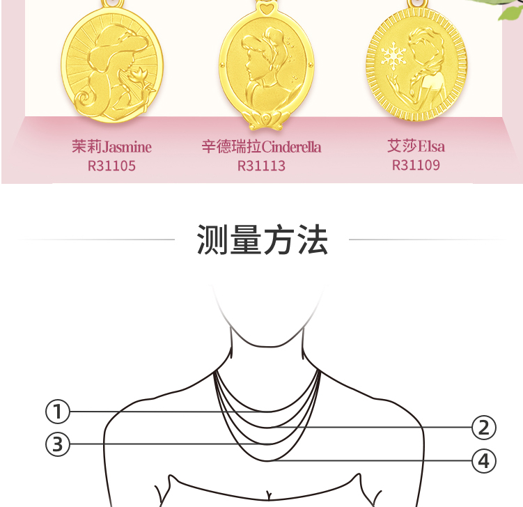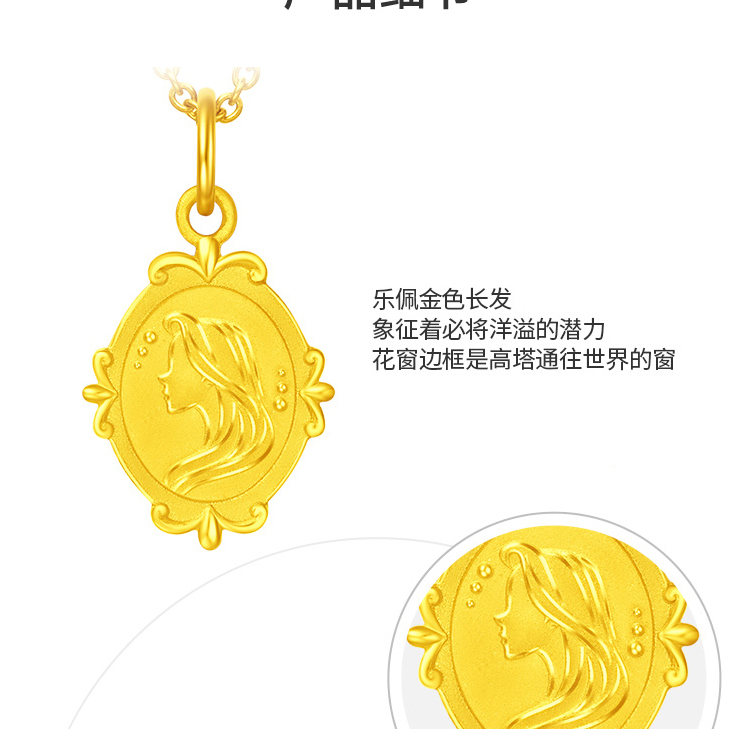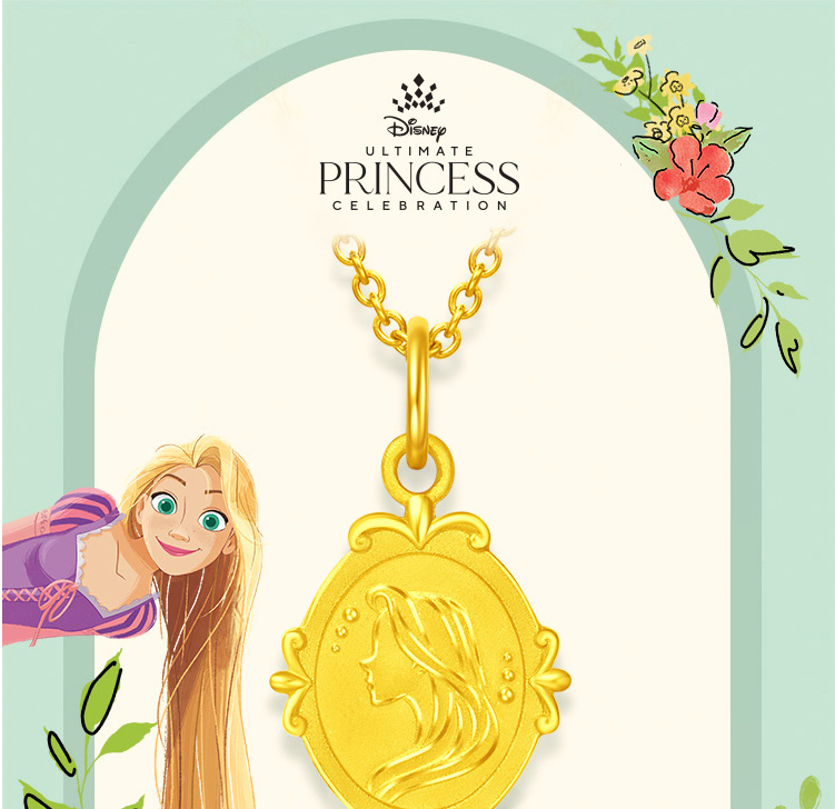 周大福迪士尼公主乐佩公主牌双面吊坠项链R31112