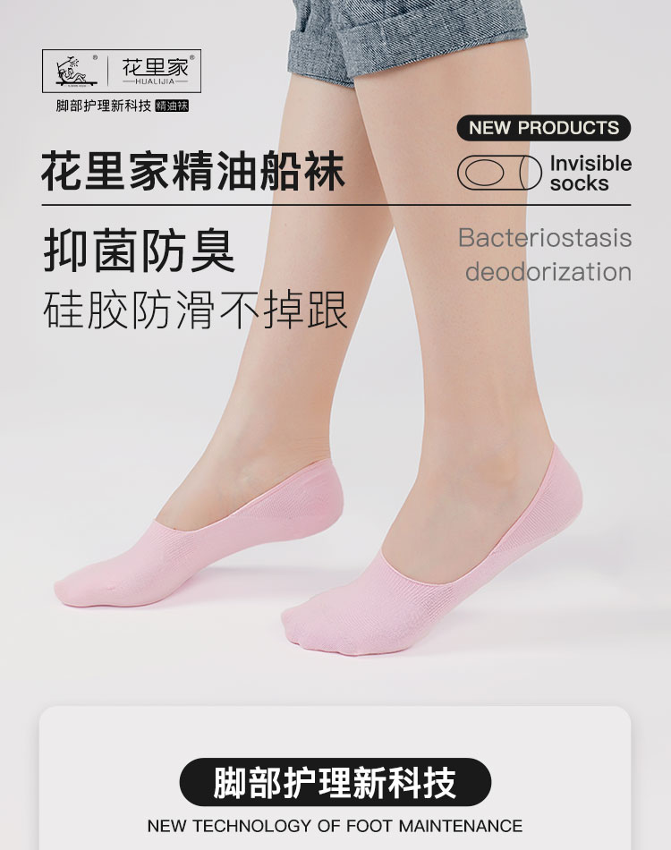 花里家精油袜子抗菌防臭精油船袜夏天冰丝透气超薄浅口防脱防滑男女短袜