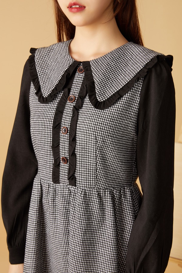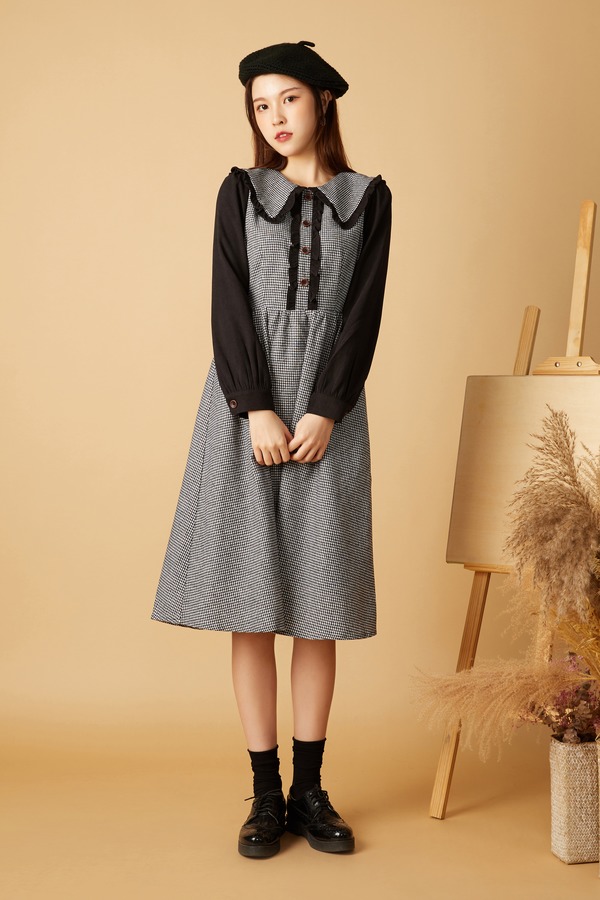 Le Malene 浪漫黑色格纹拼接连衣裙 10541