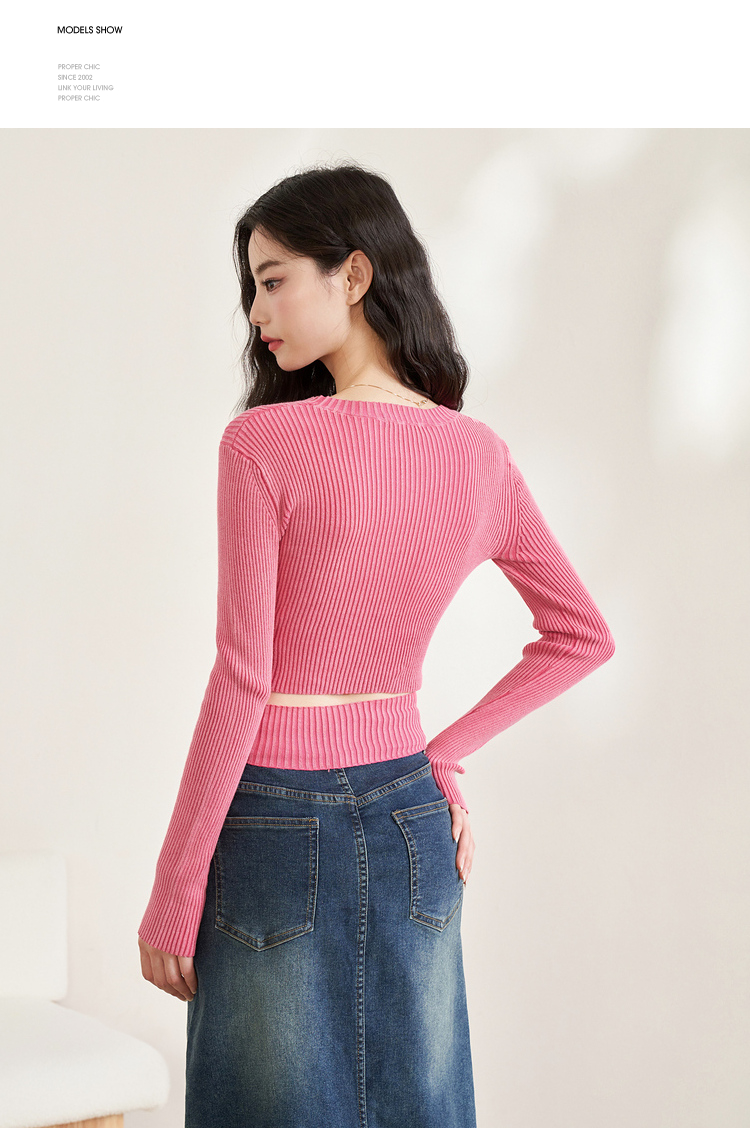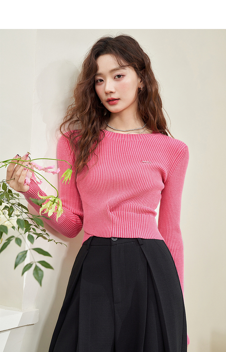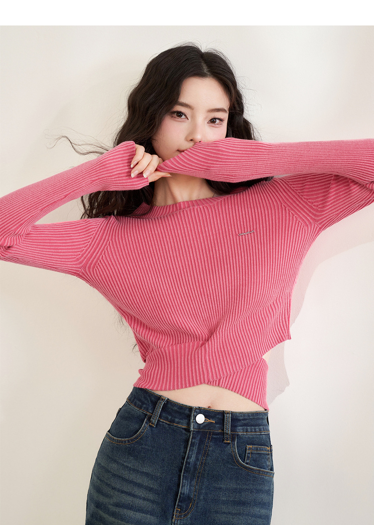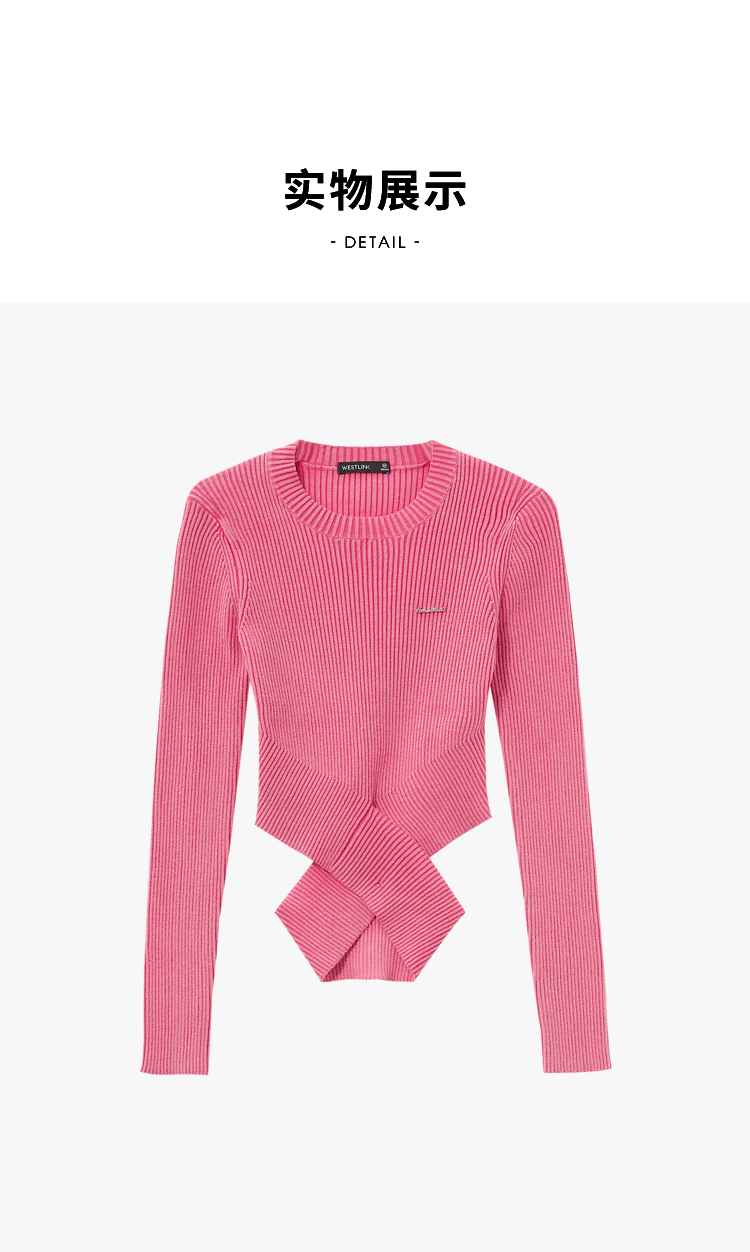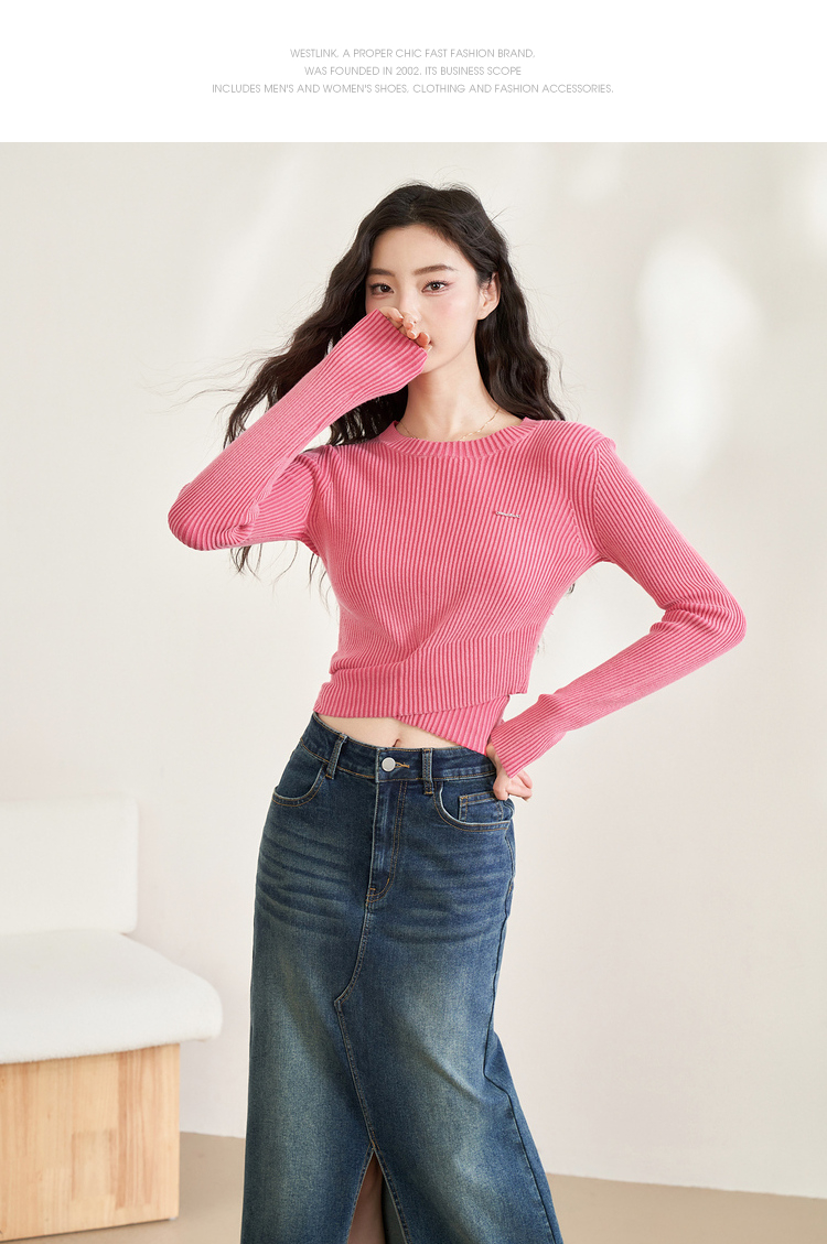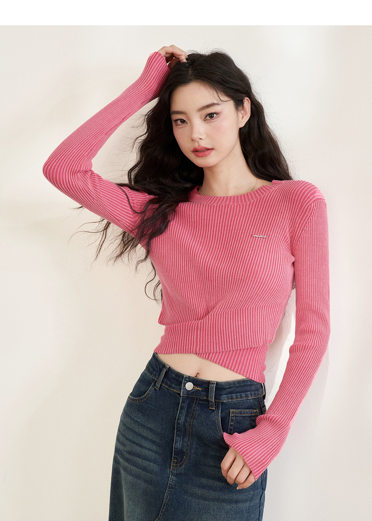 美式辣妹交叉下摆修身短款针织衫女新款设计感上衣V0540472