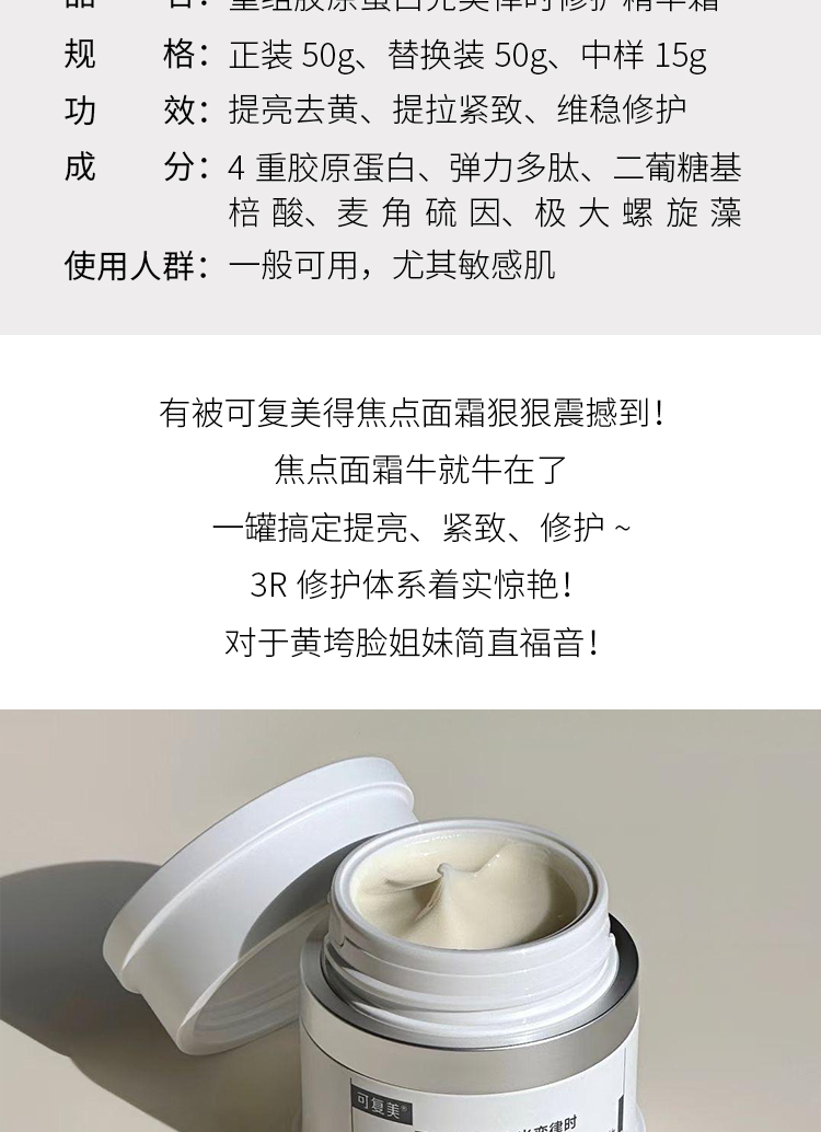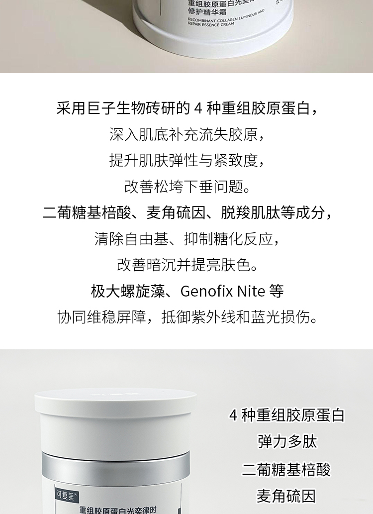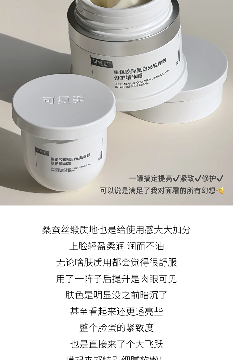 新品 可复美重组胶原蛋白奕律时修护精华霜*正装/替换装/中样
