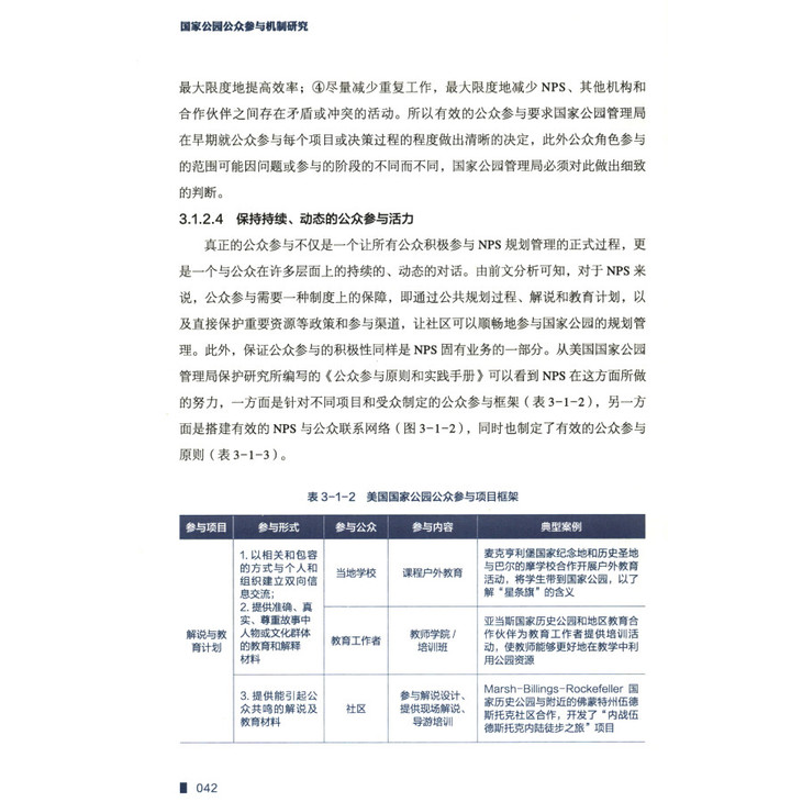 第一,本书丰富了国家公园研究领域公众参与机制的相关理论。“公众参与”虽然在行政法治、城市规划等许多领域取得了大量研究成果,但基于中国国家公园领域展开的研究较少,本书对国内国家公园公众参与机制进行了总体系统梳理研究,丰富了国家公园领域公众参与机制的研究理论。