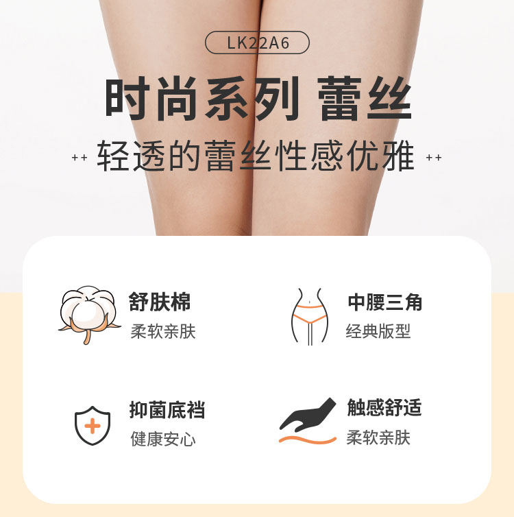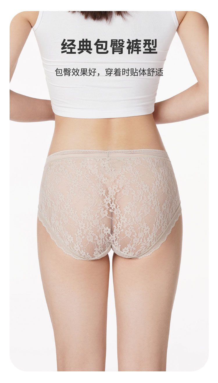 都市丽人时尚系列薄透丝滑蕾丝网布单品内裤三角中叉女士内裤LK22A6
