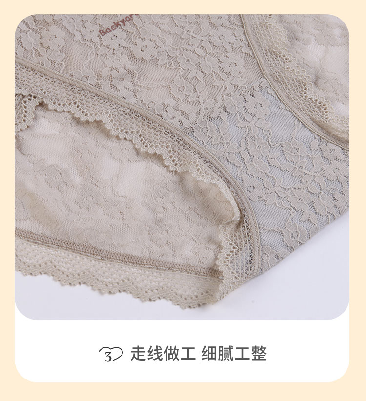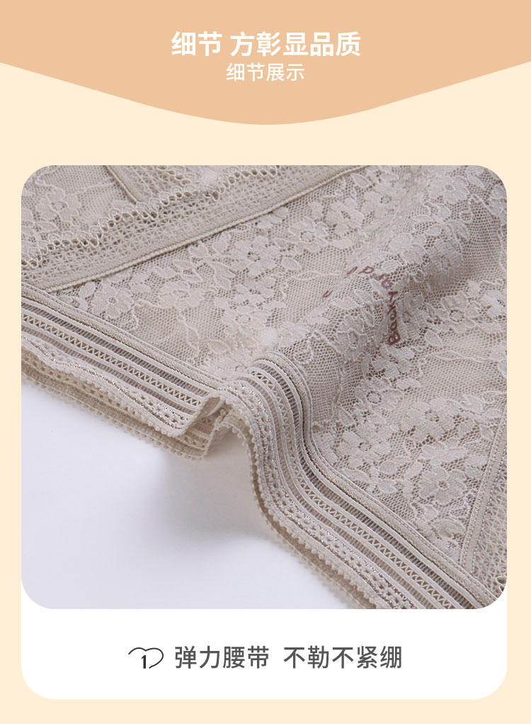 都市丽人内裤薄透丝滑平角裤蕾丝+泳布女士内裤LPT2M1