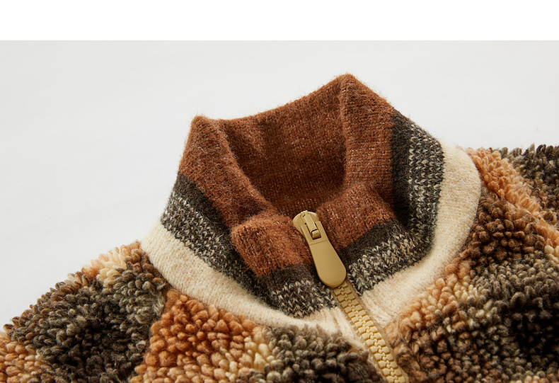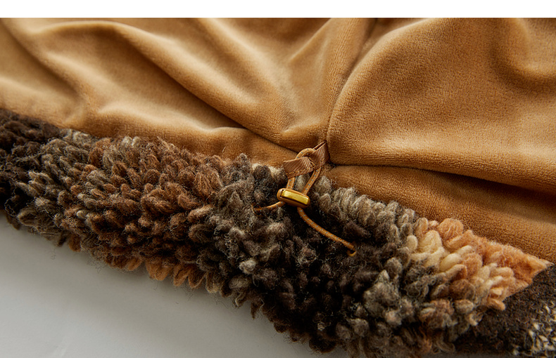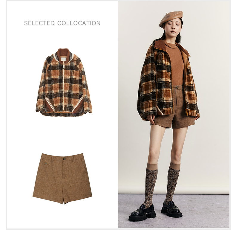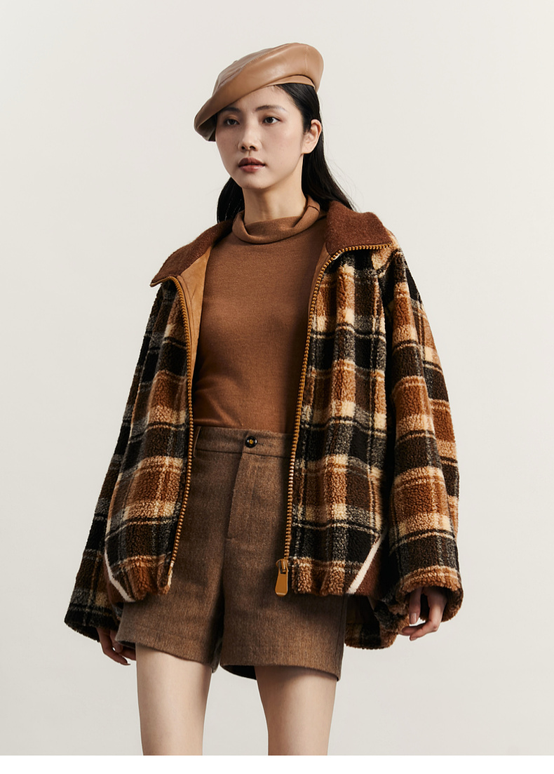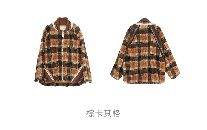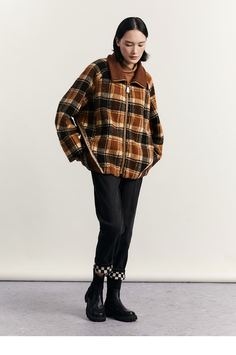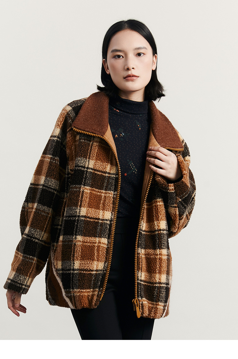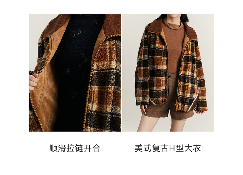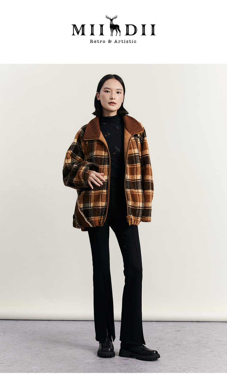 谜底羊羔毛外套女2023冬新品复古立领宽松呢子中长大衣234MD1556